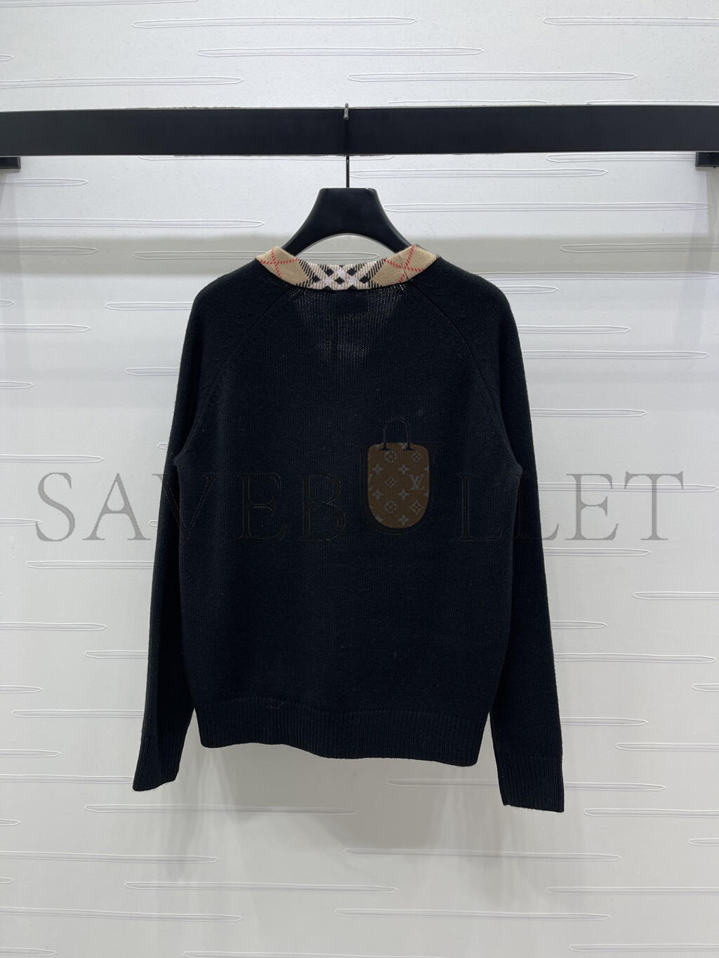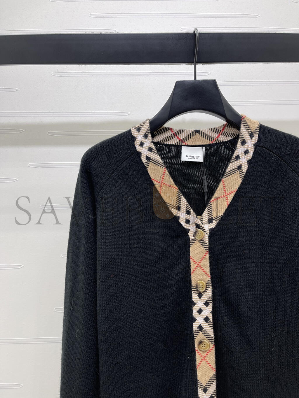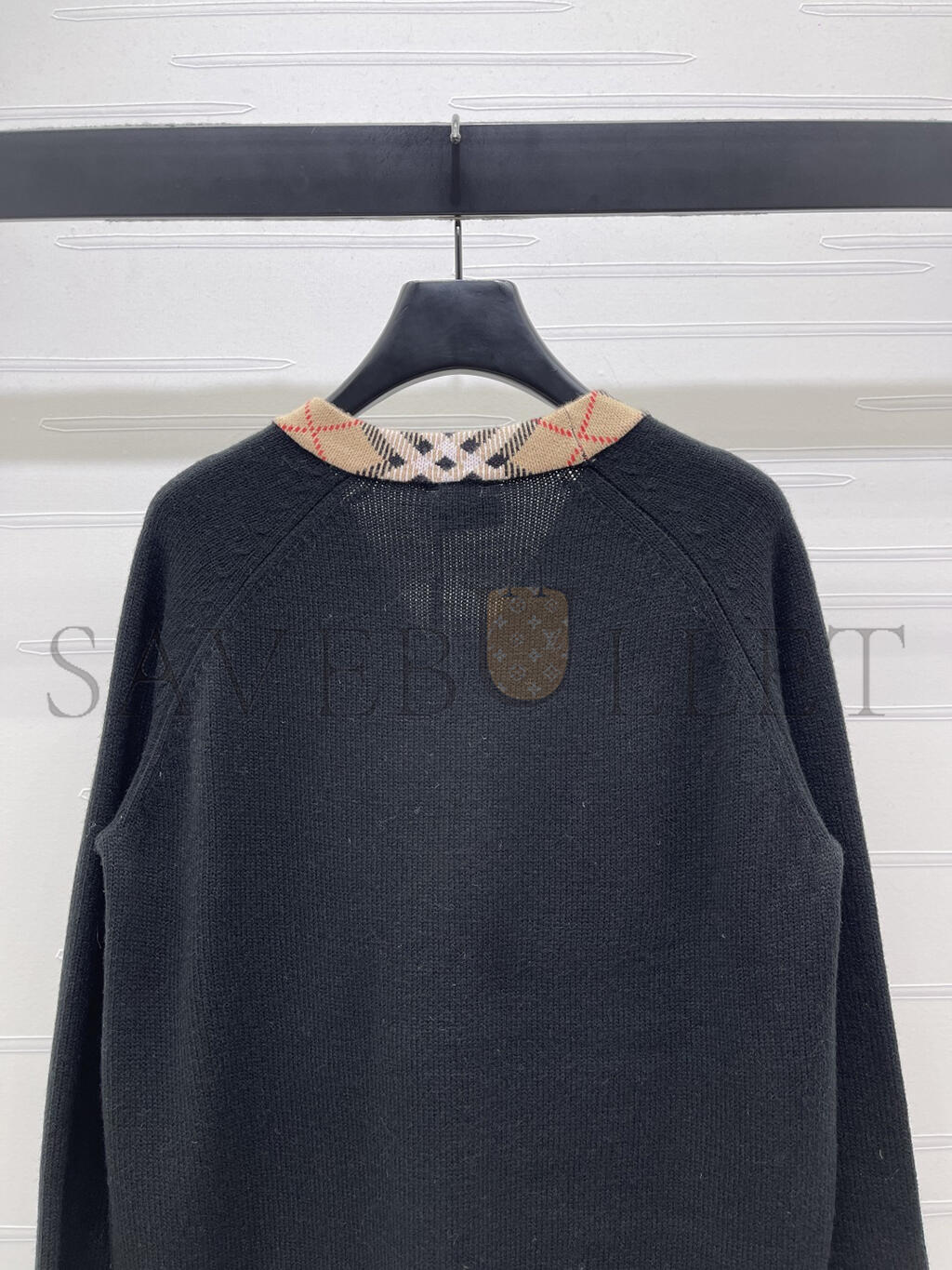 BURBERRY CHECKERED TRIM WOOL CARDIGAN