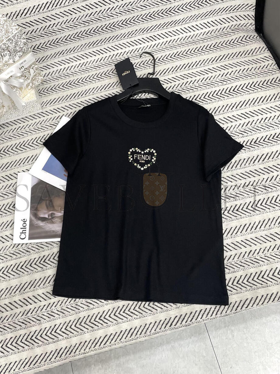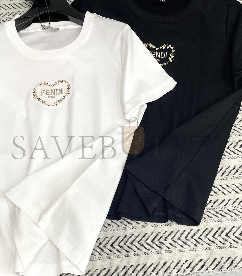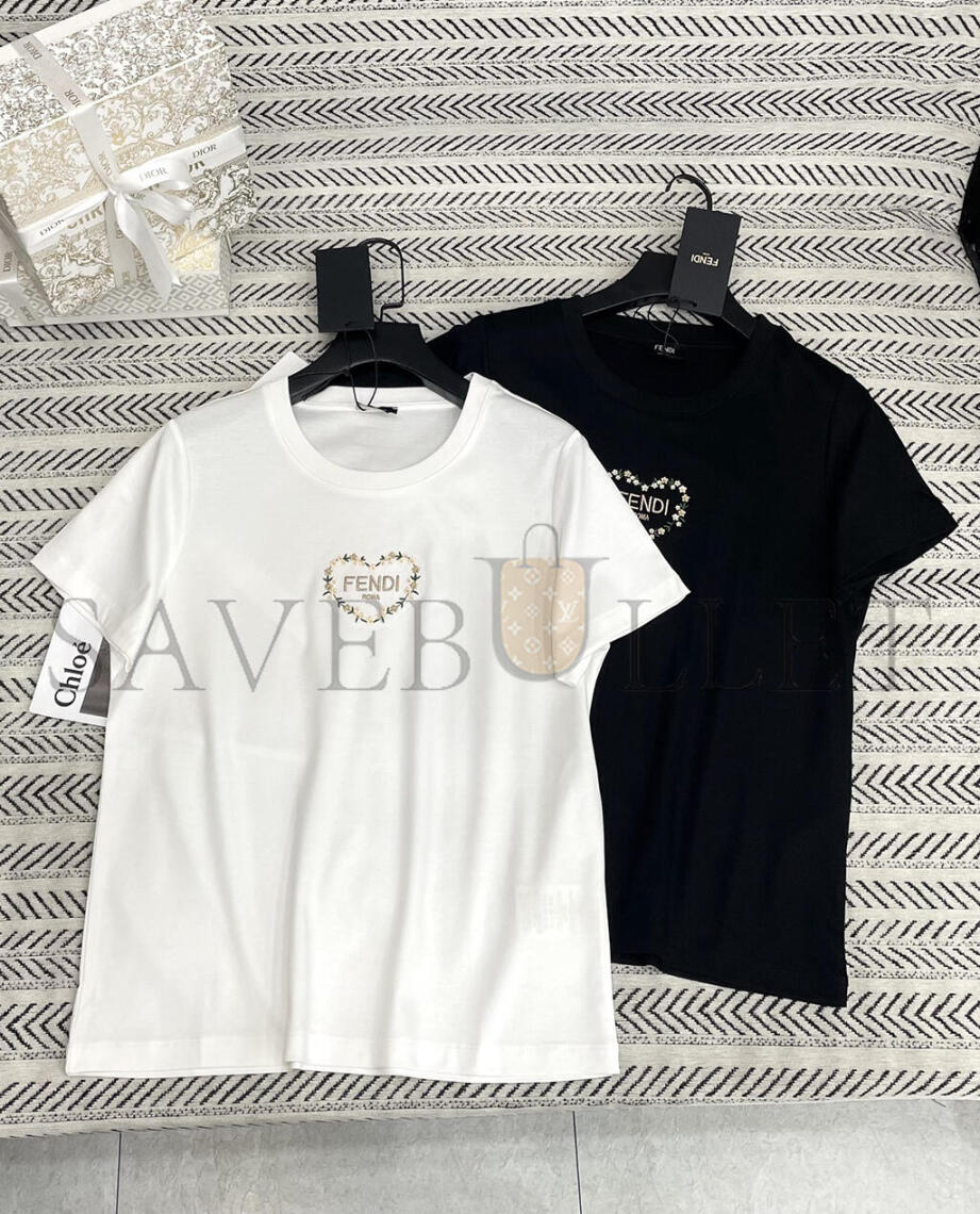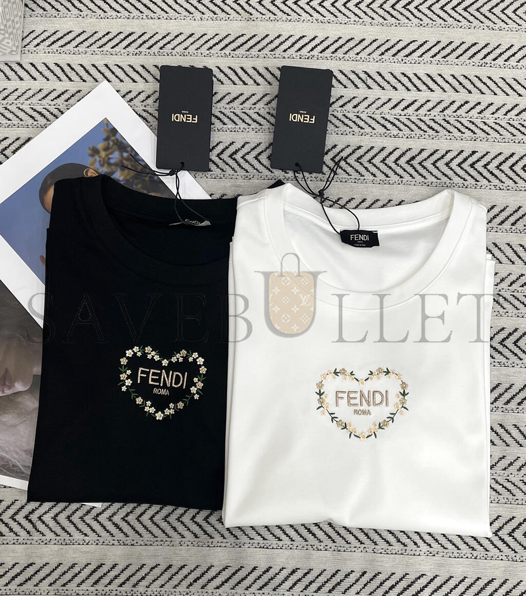 FENDI PEACH HEART FLORAL EMBROIDERY T-SHIRT