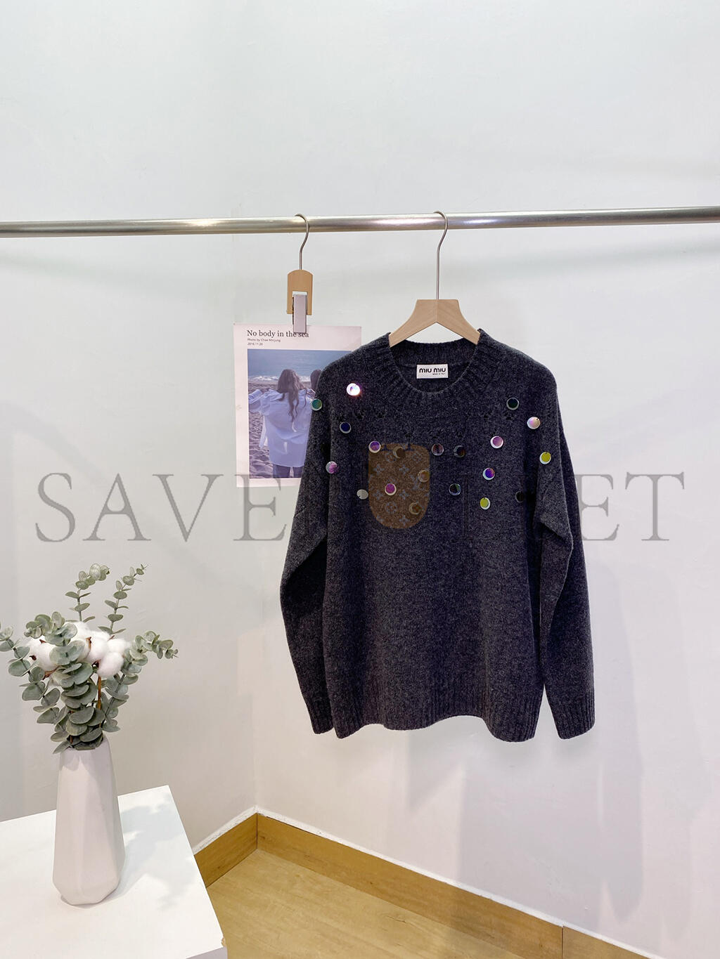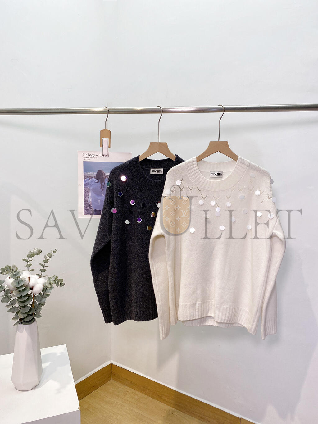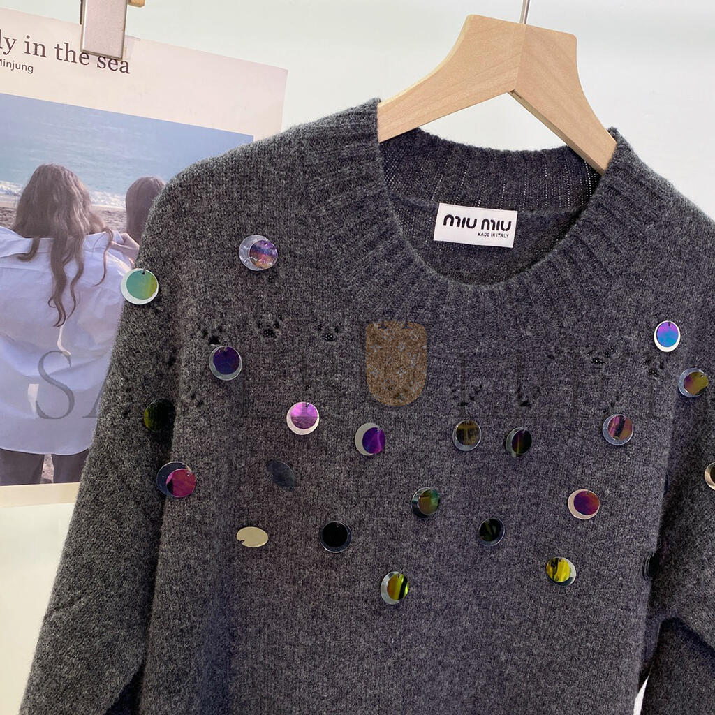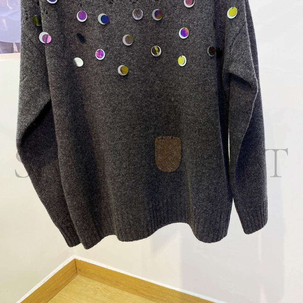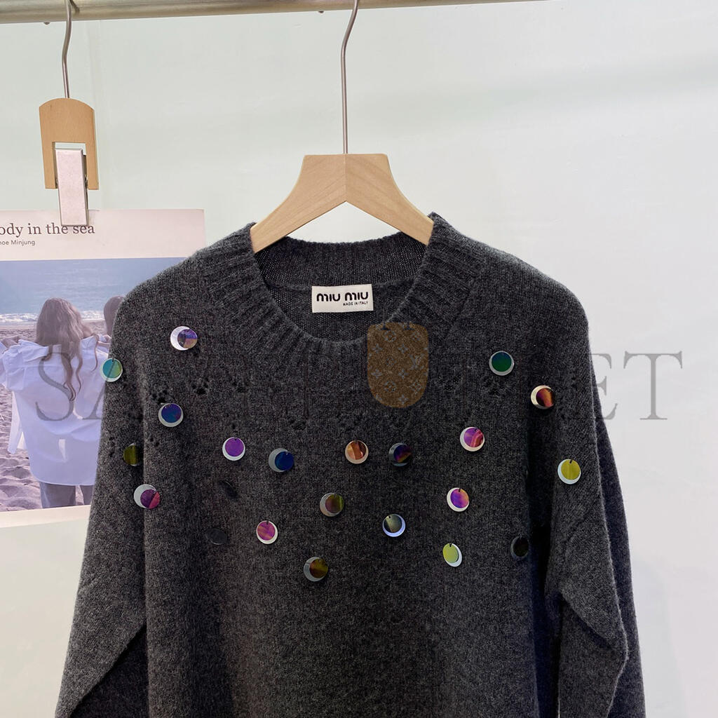 MIU MIU SEQUINED OPENWORK WOOL SWEATER
