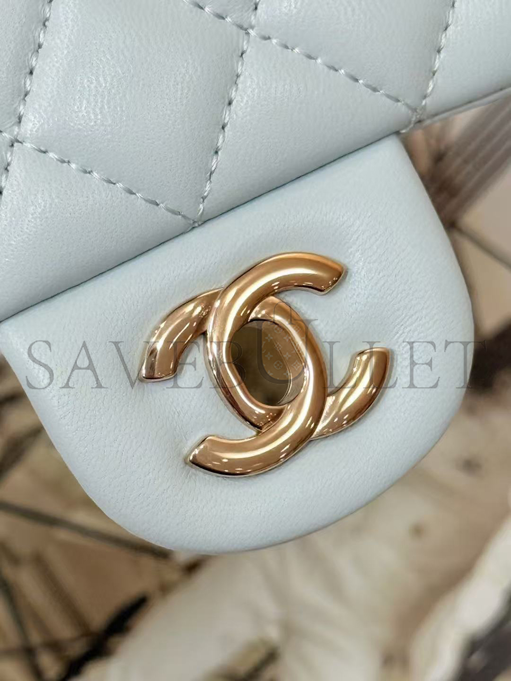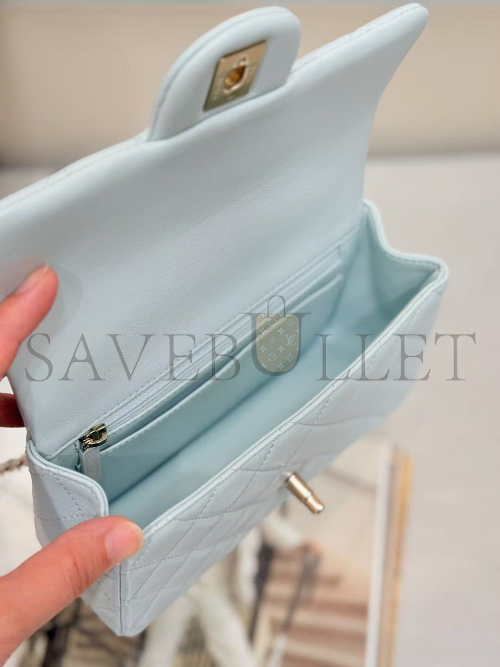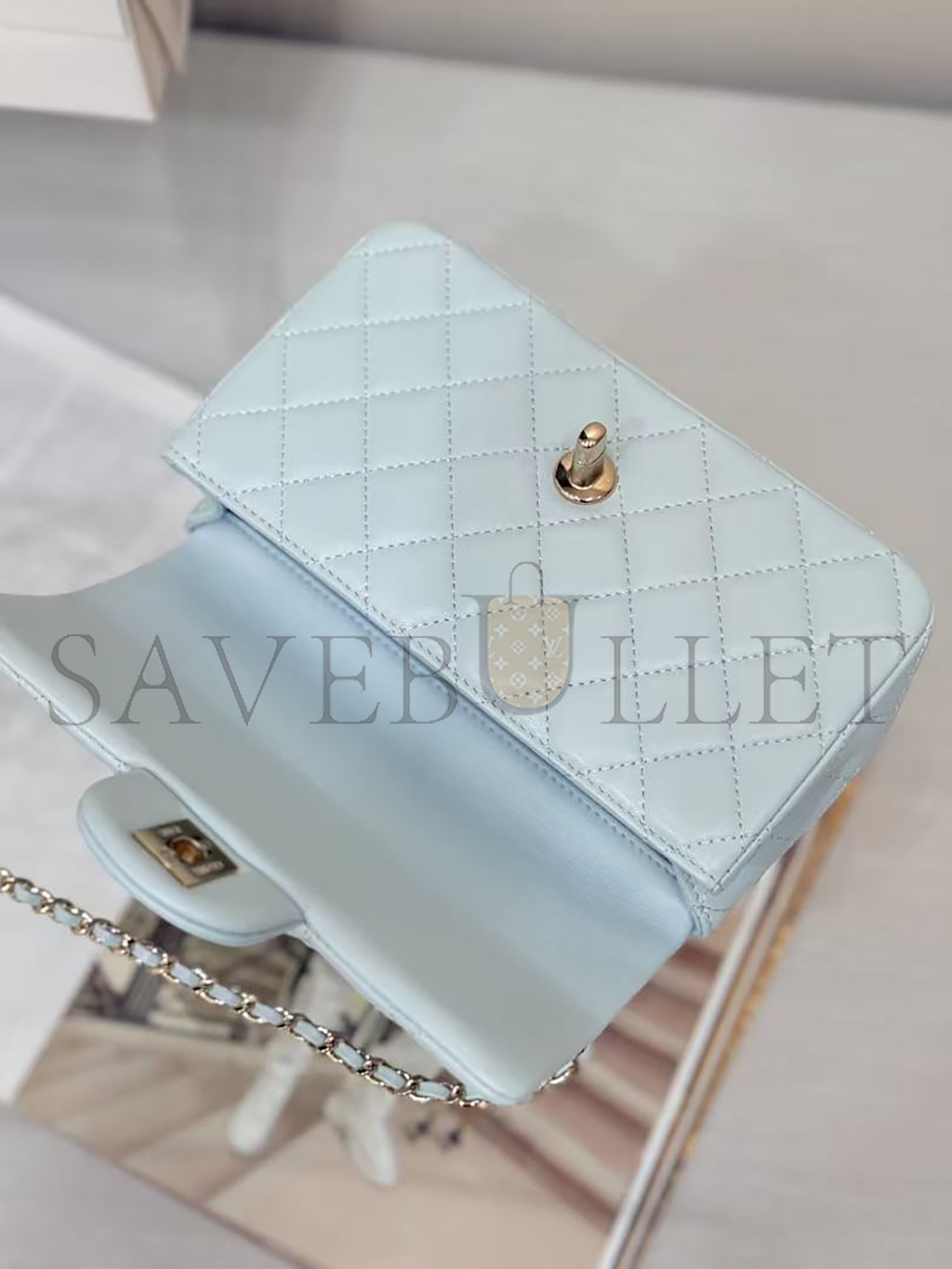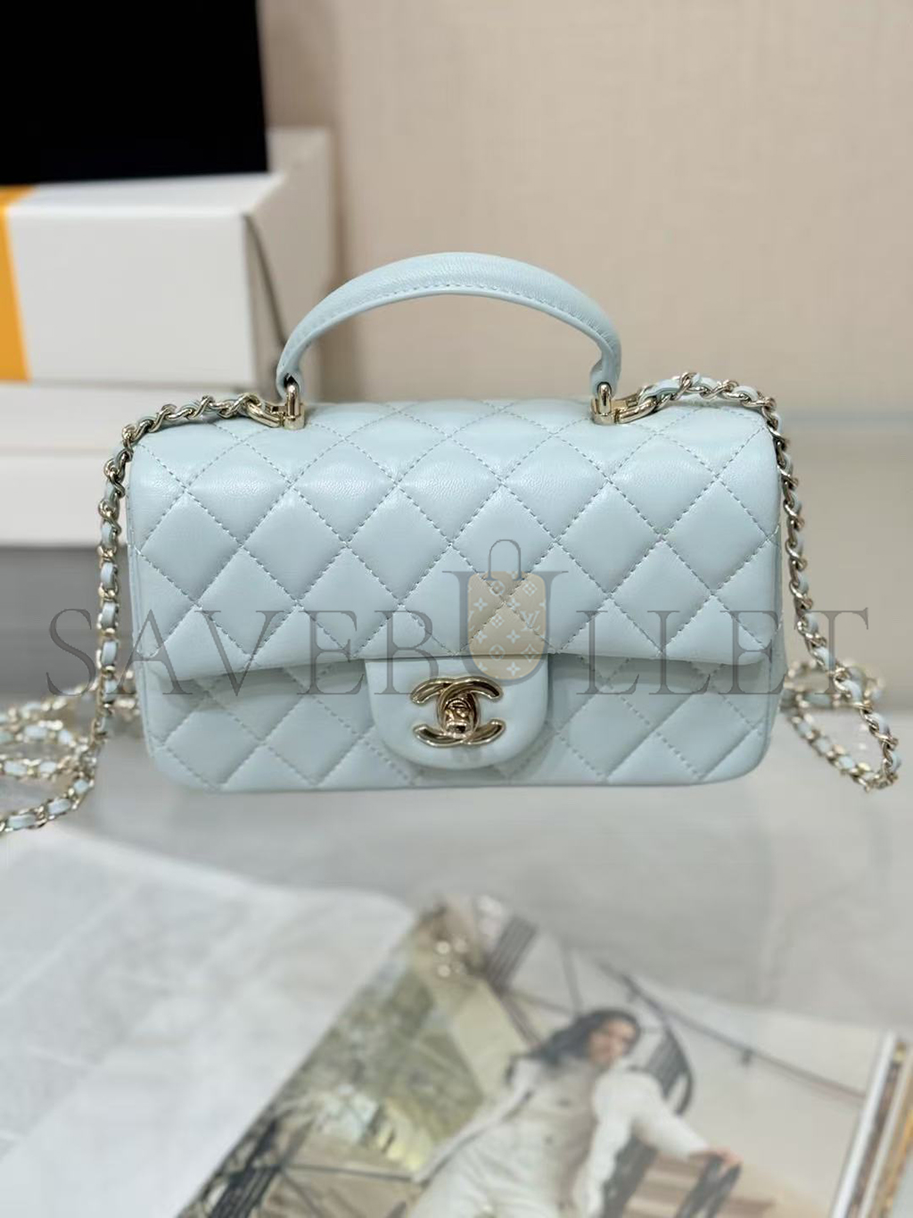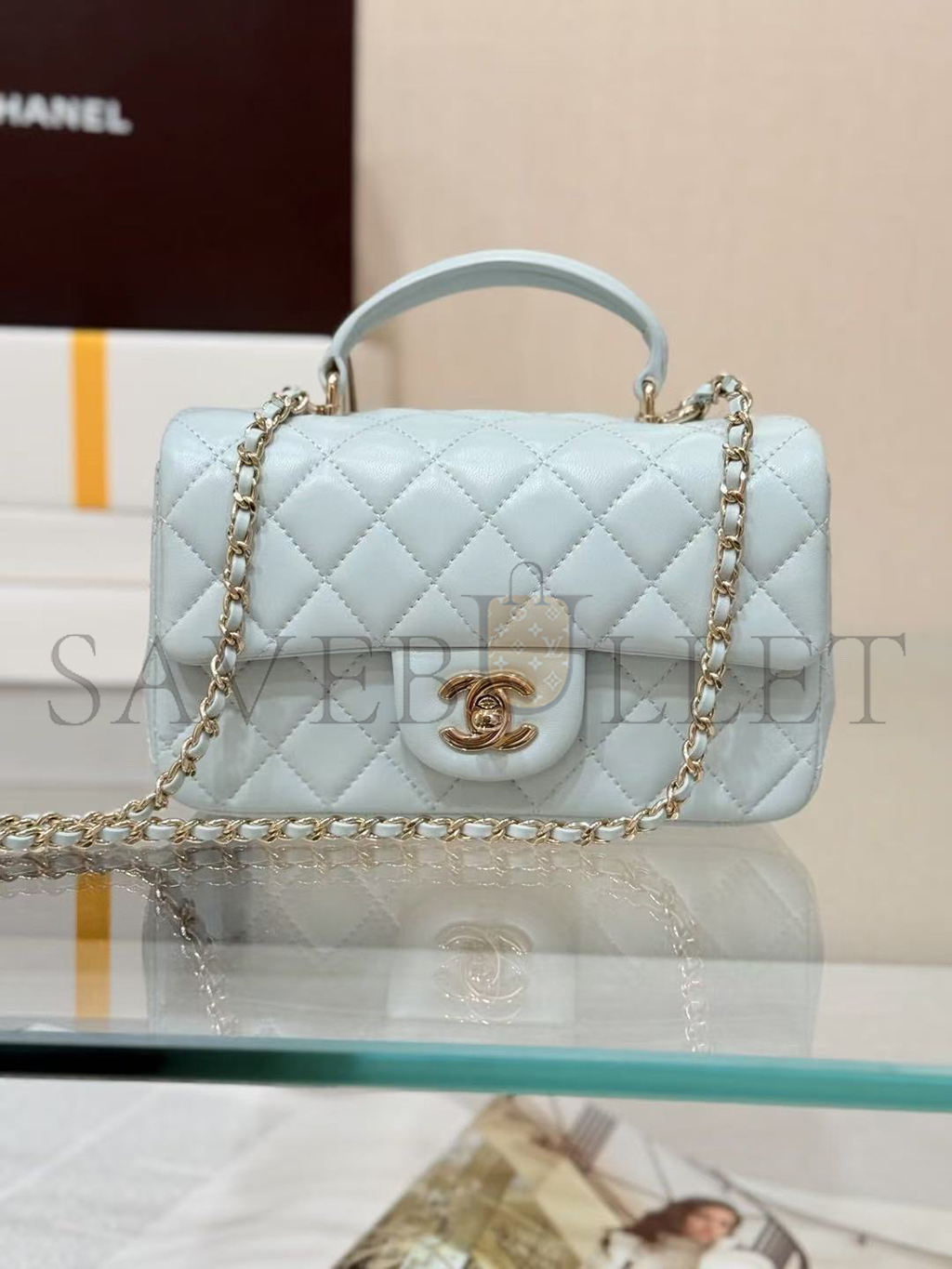 CHANEL MINI RECTANGULAR FLAP WITH TOP HANDLE LAMBSKIN LIGHT GOLD HARDWARE (20*13*6cm)