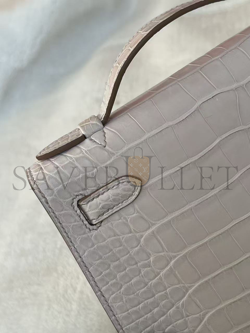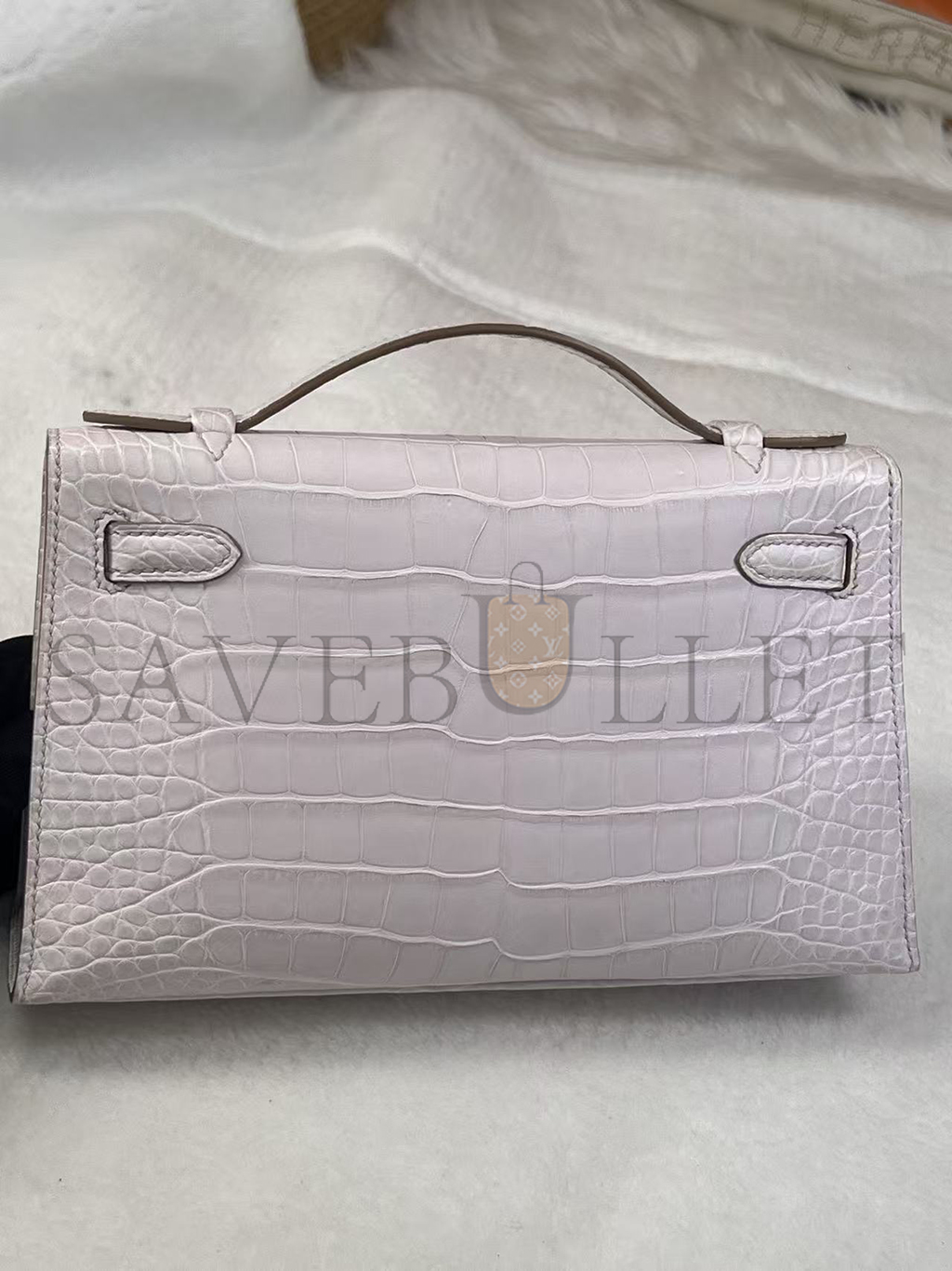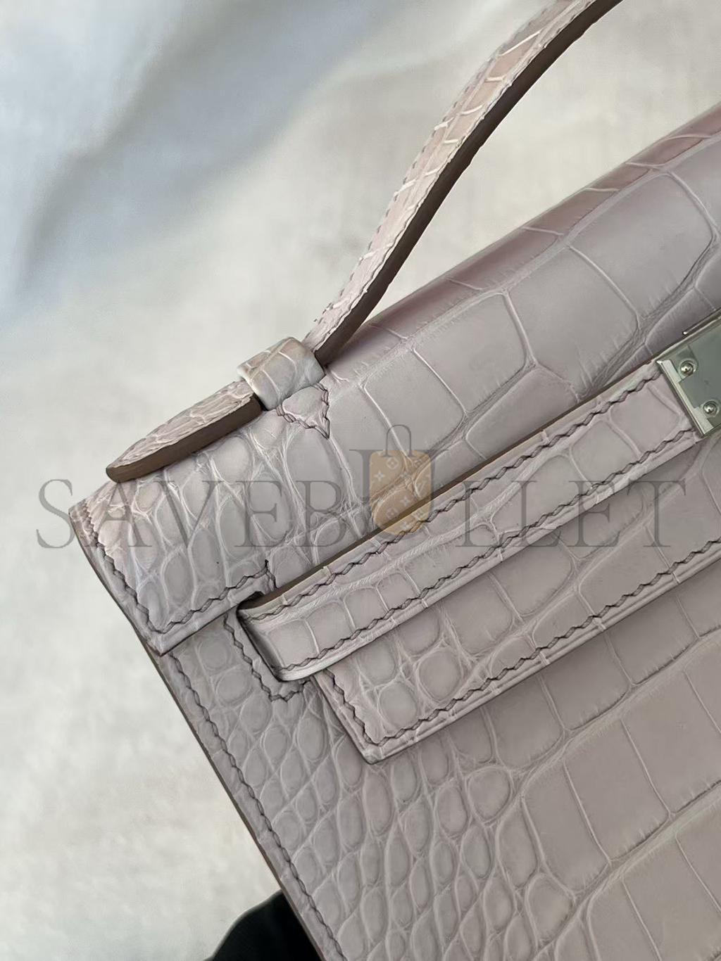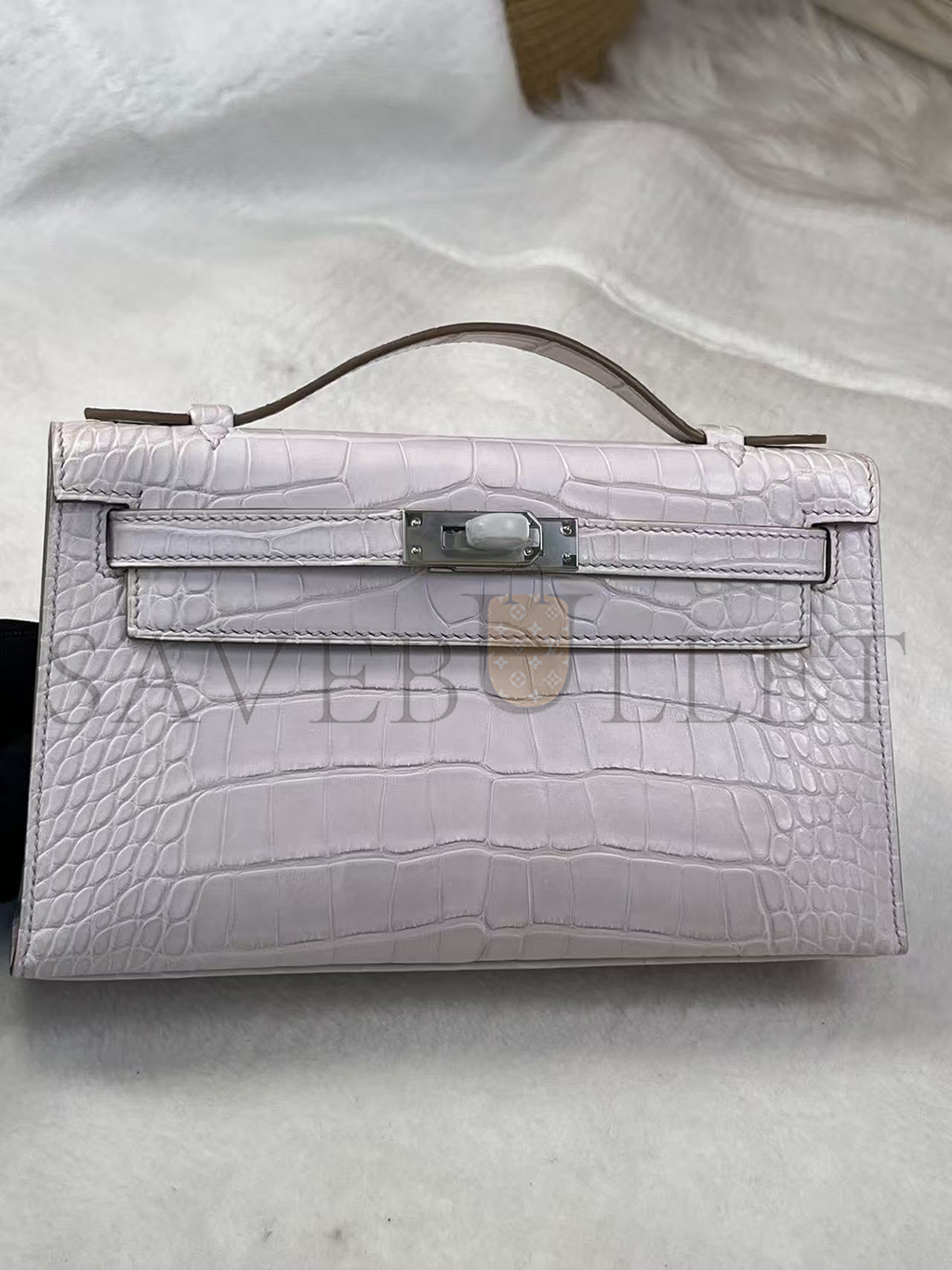 HERMÈS MASTER MINI KELLY POCHETTE CLUTCH ALLIGATOR MAUVE PALE PALLADIUM HARDWARE (22*14*7cm)