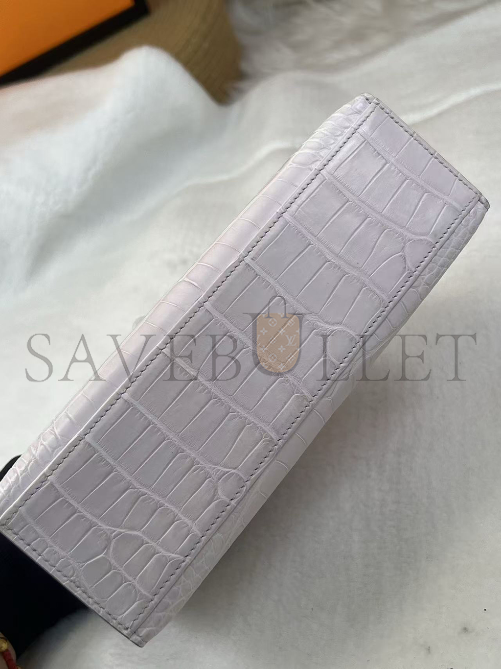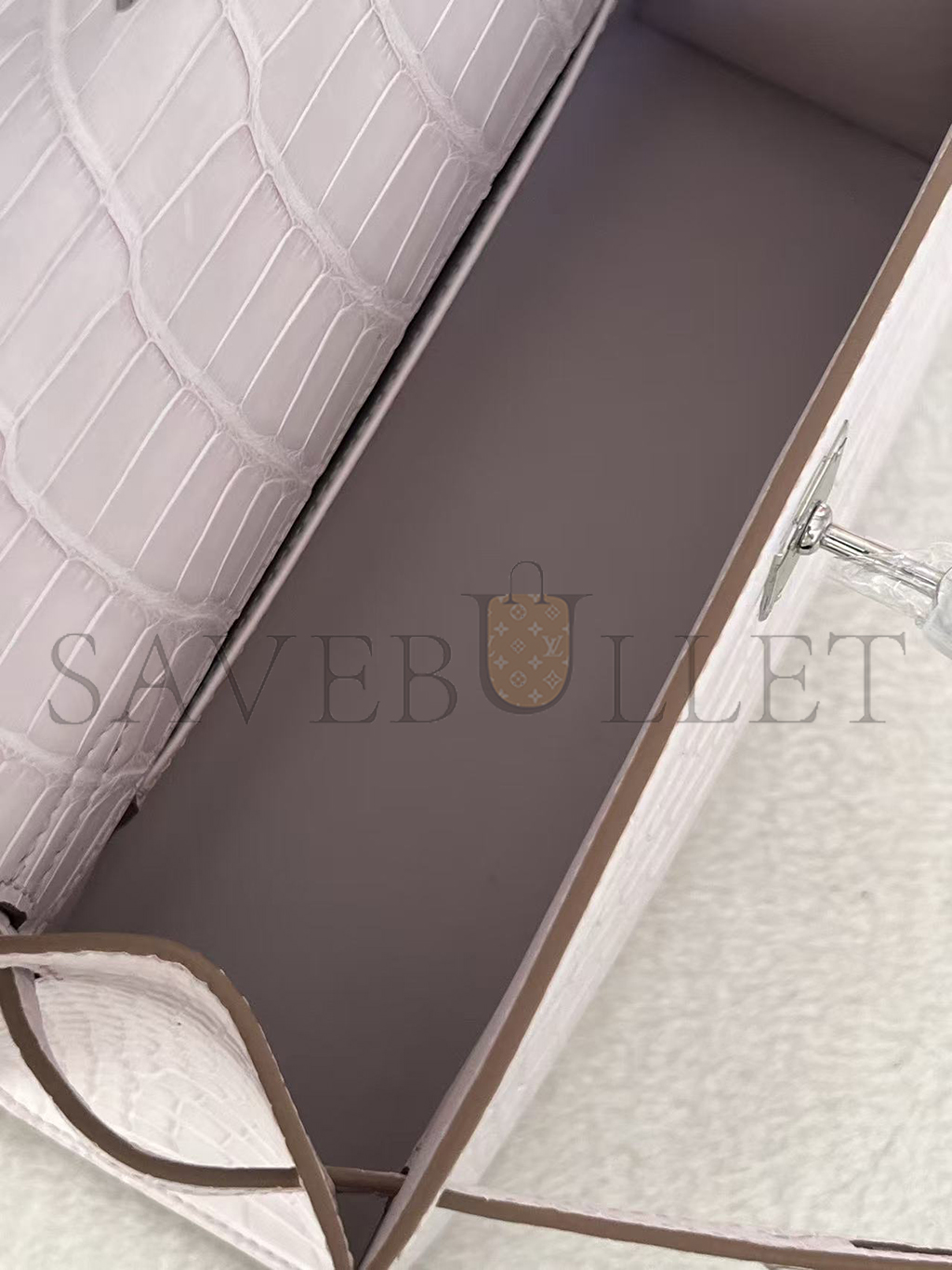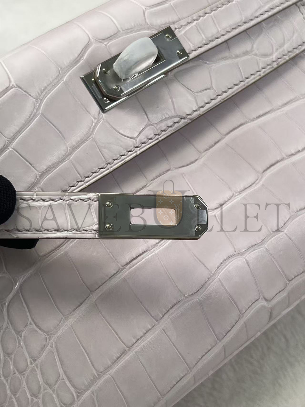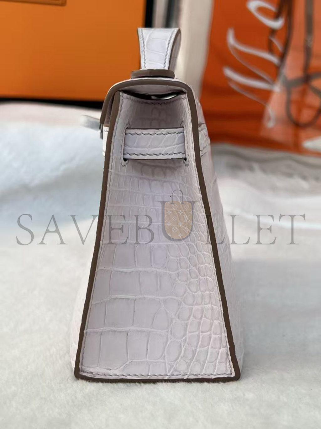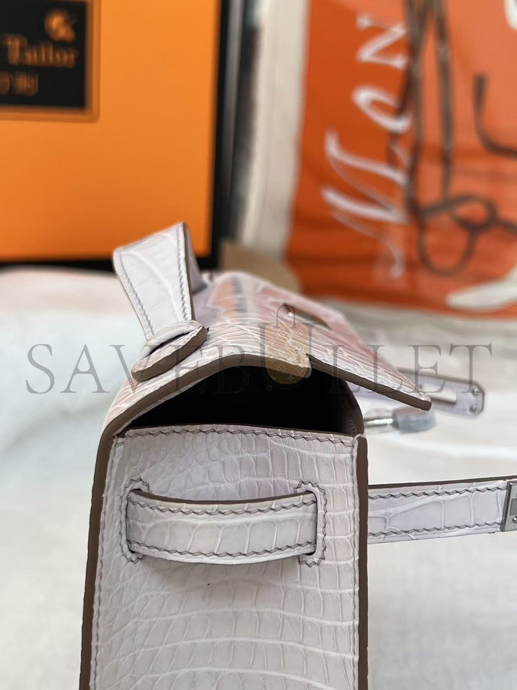 HERMÈS MASTER MINI KELLY POCHETTE CLUTCH ALLIGATOR MAUVE PALE PALLADIUM HARDWARE (22*14*7cm)