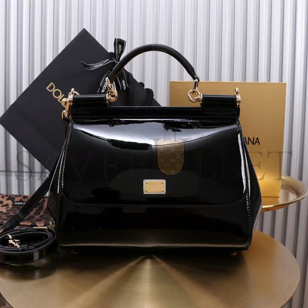 DOLCE GABBANA SICILY DAUPHINE HANDBAG PATENT LEATHER BB6002A103780999 (25*20*12cm)