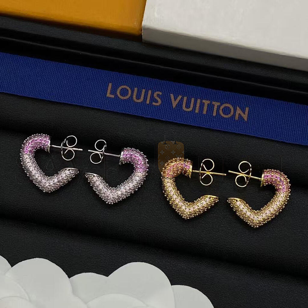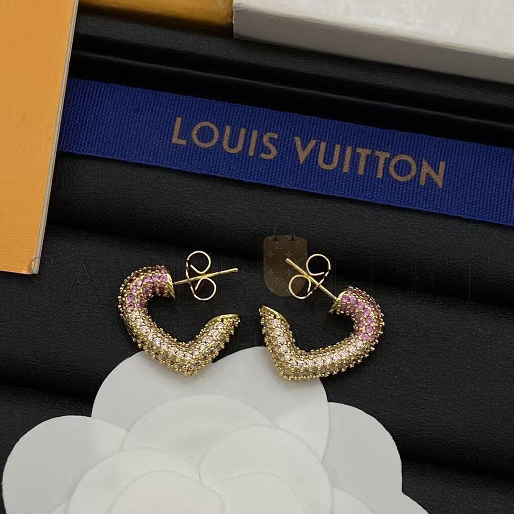 LOUIS VUITTON HEART-SHAPED PINK RHINESTONE EARRINGS