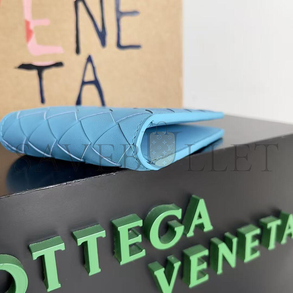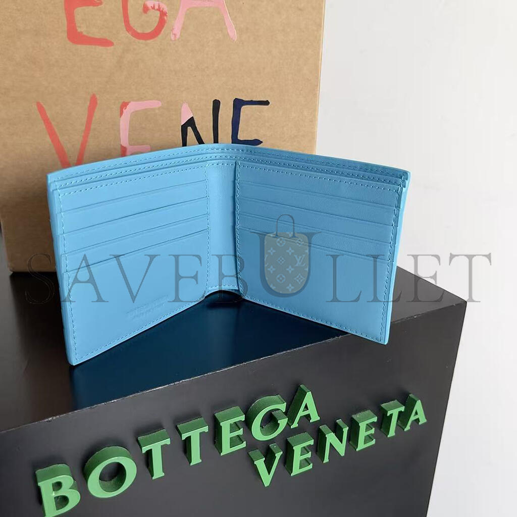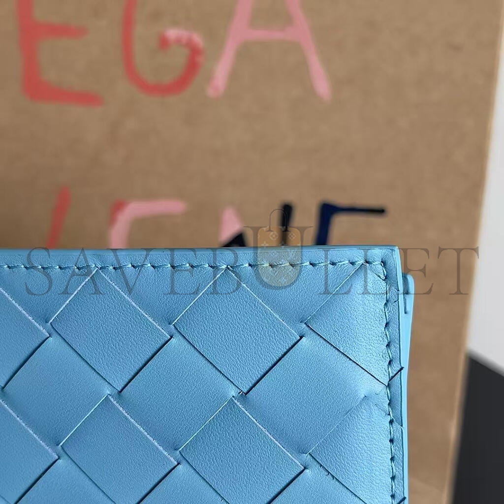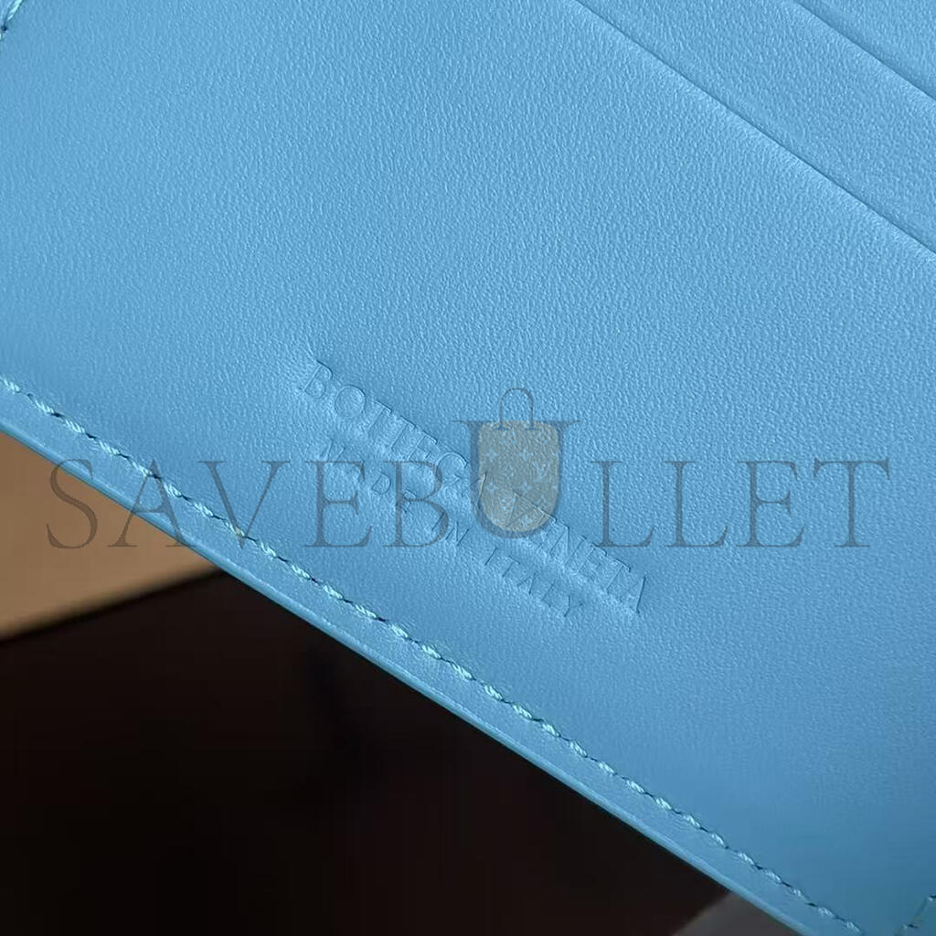BOTTEGA VENETA INTRICIATO LEATHER BI-FOLD WALLET POOL BLUE 605722 (11*9.5*1cm)