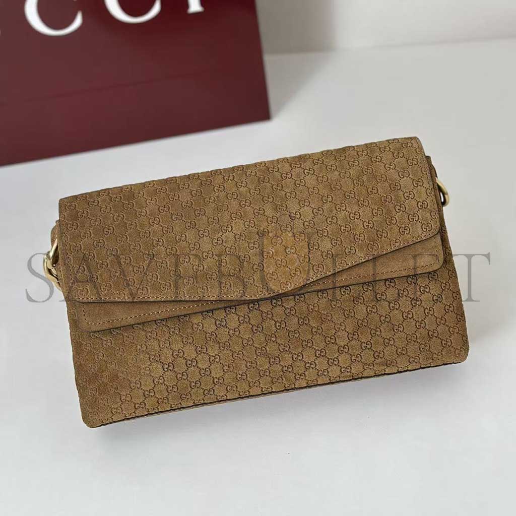 Brown embossed GG suede