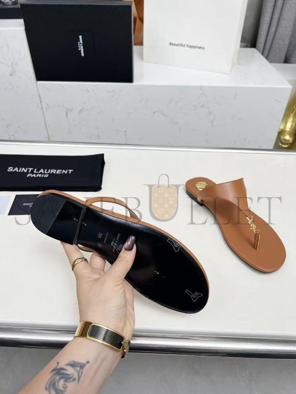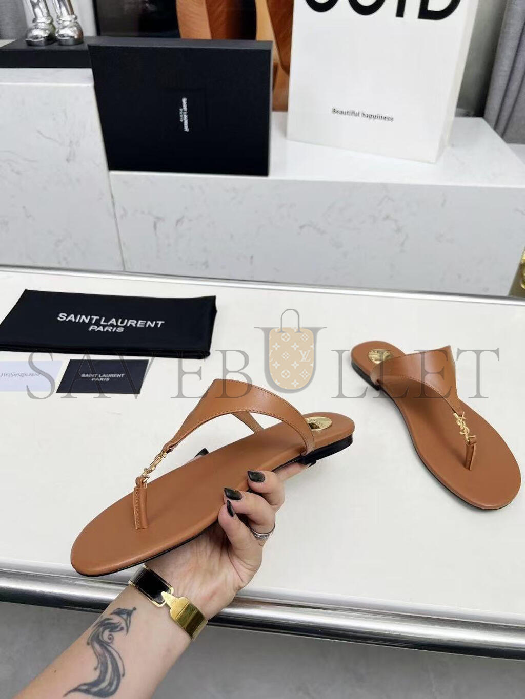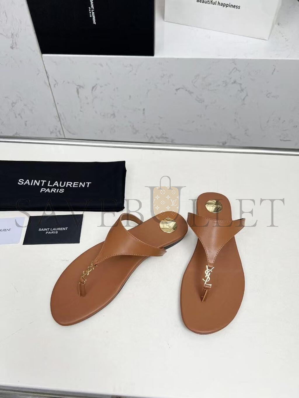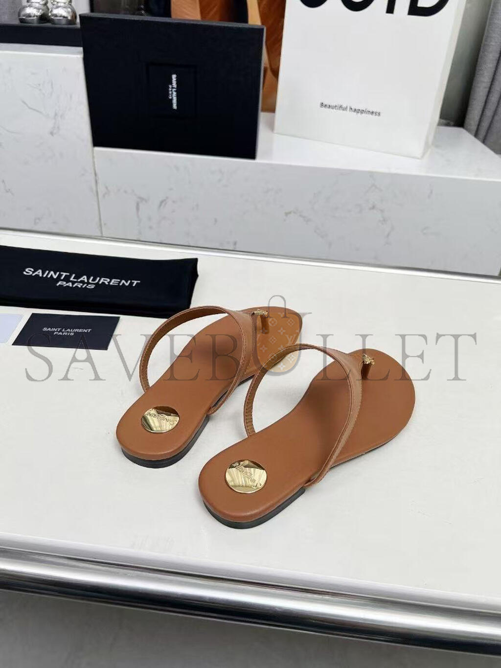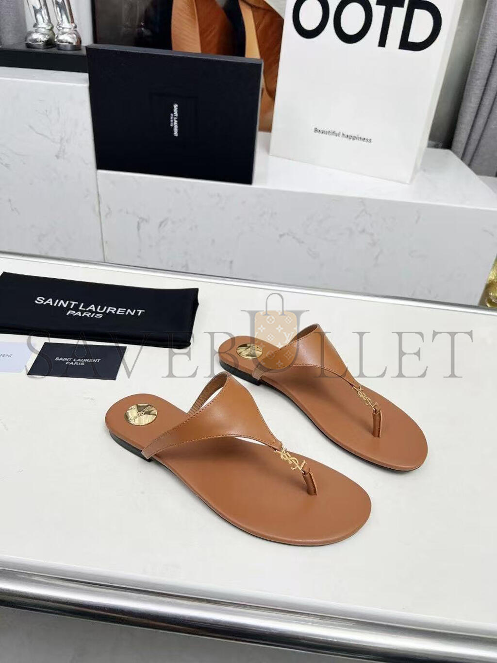 YSL CASSANDRE LEATHER THONG SLIPPER