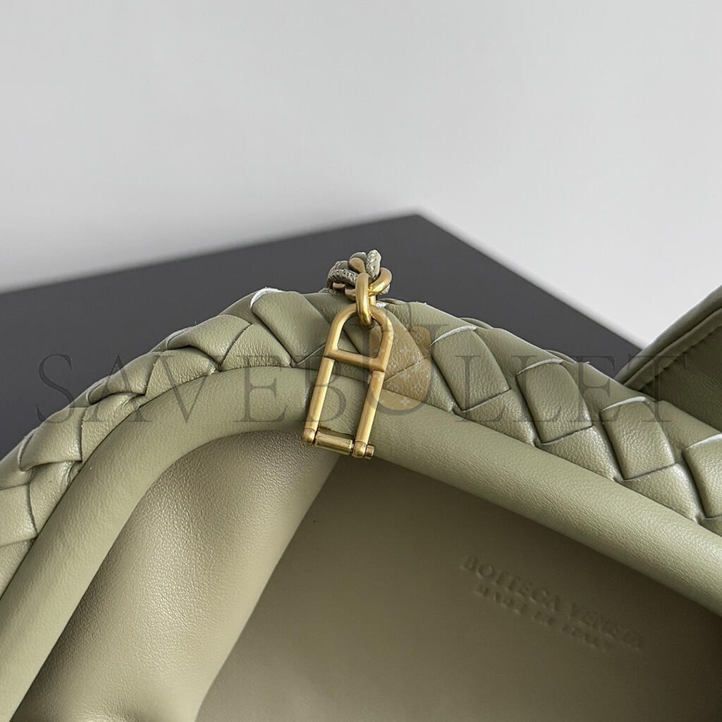 Small padded Intrecciato leather mini clutch with leather braided cross-body metal chain