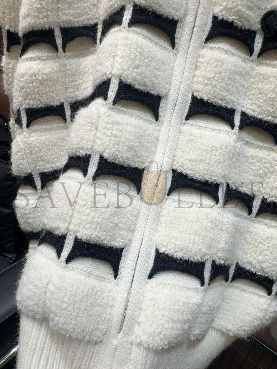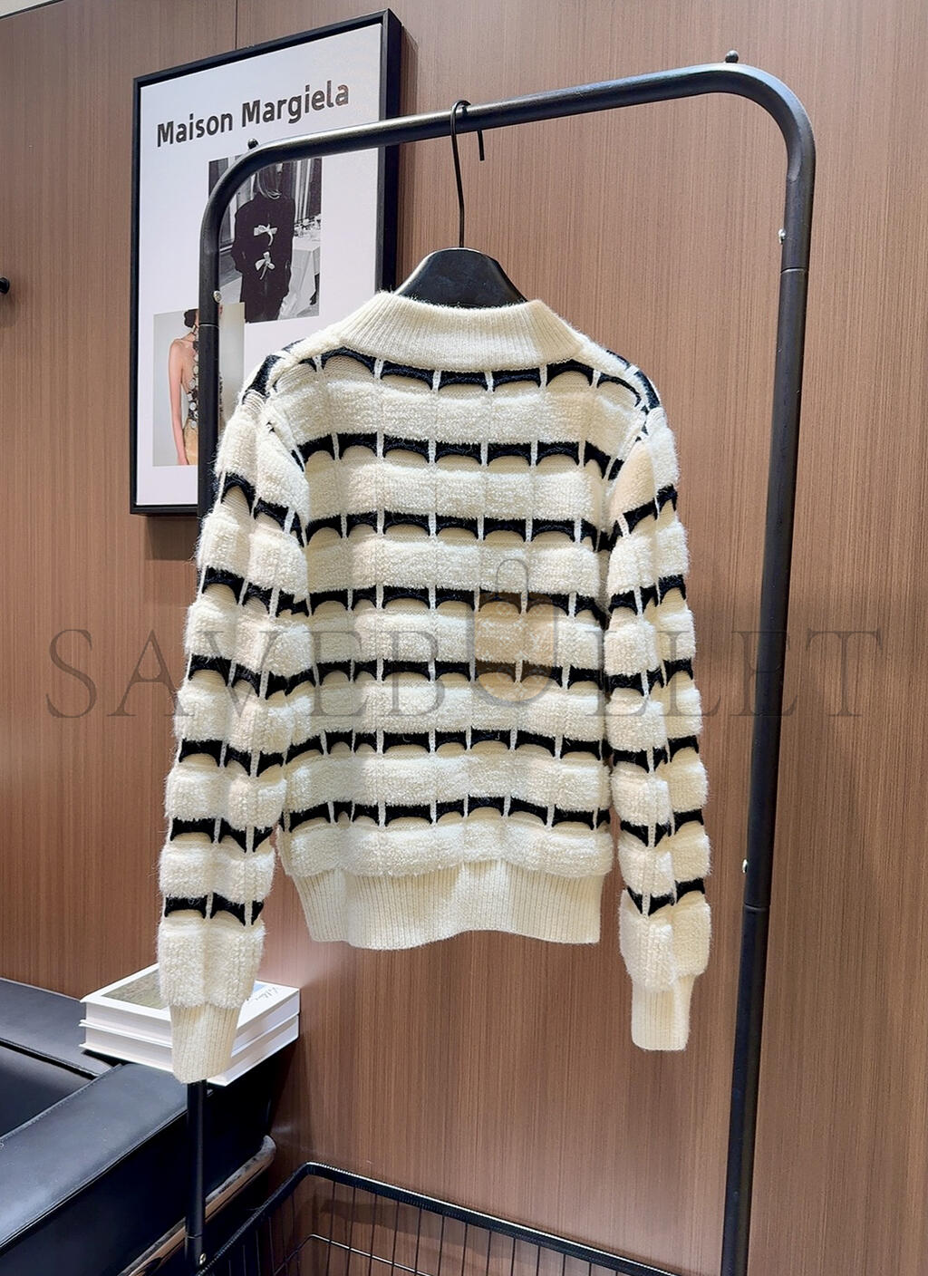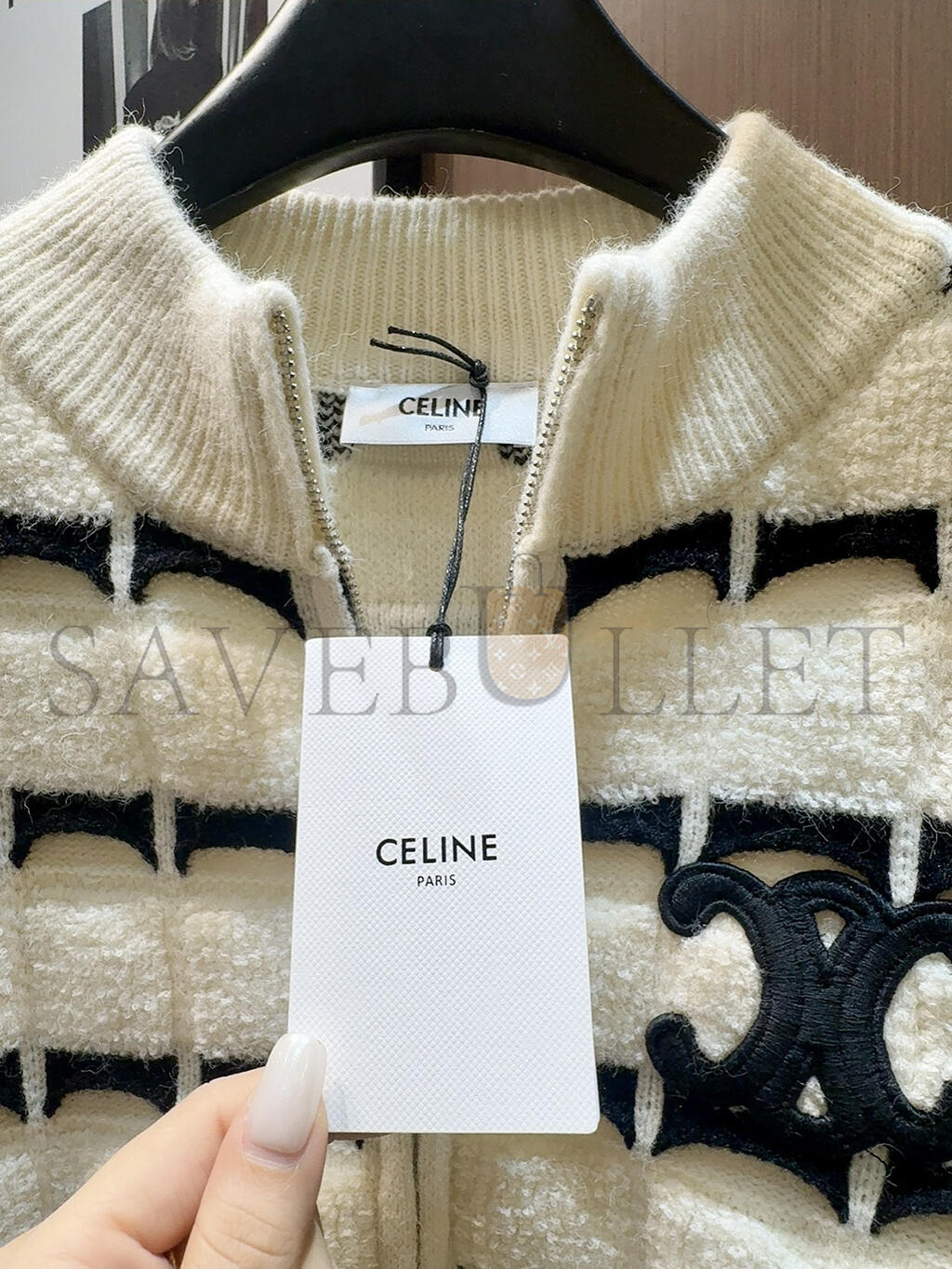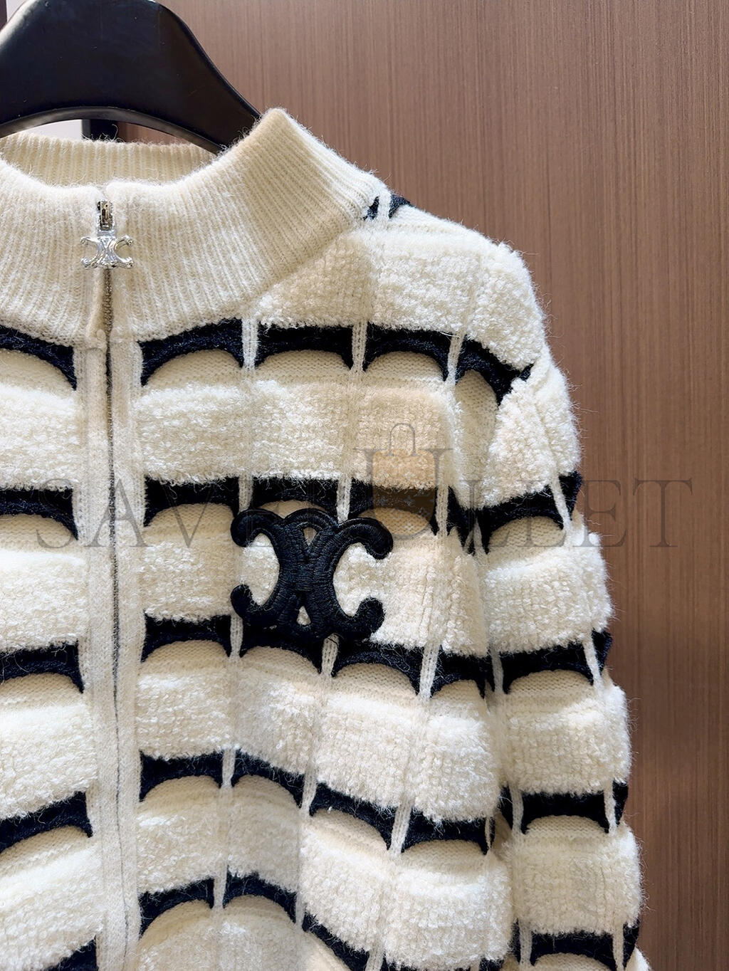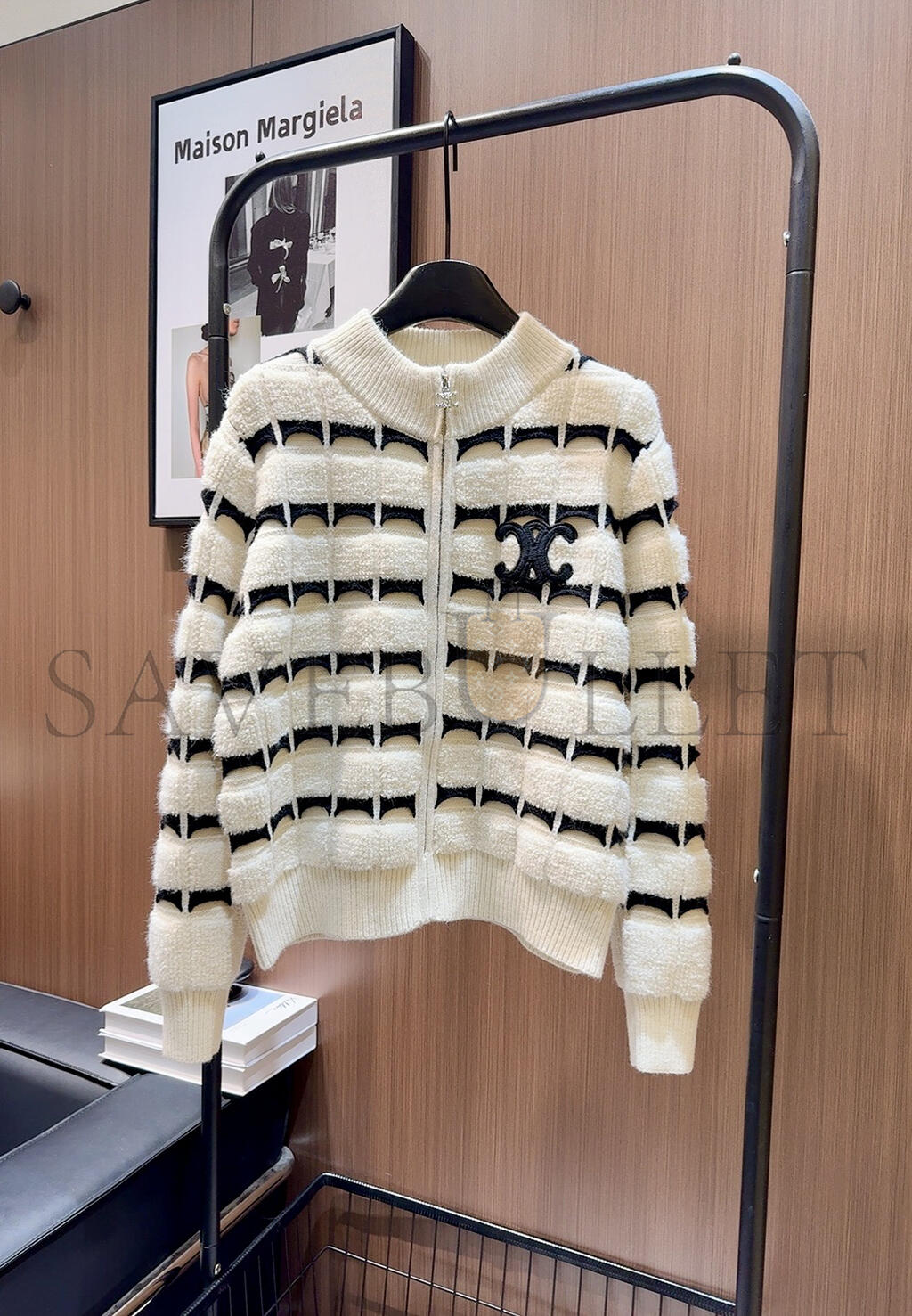 CELINE STRIPED PATCHWORK STAND COLLAR COAT