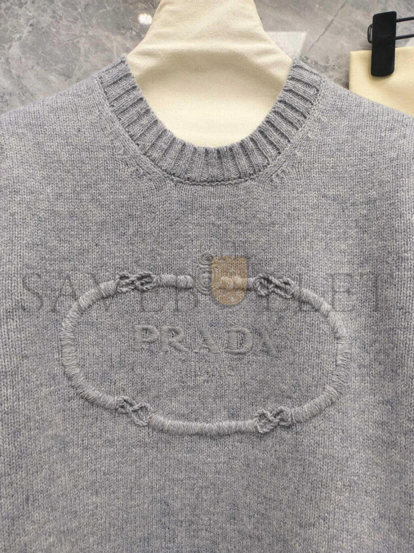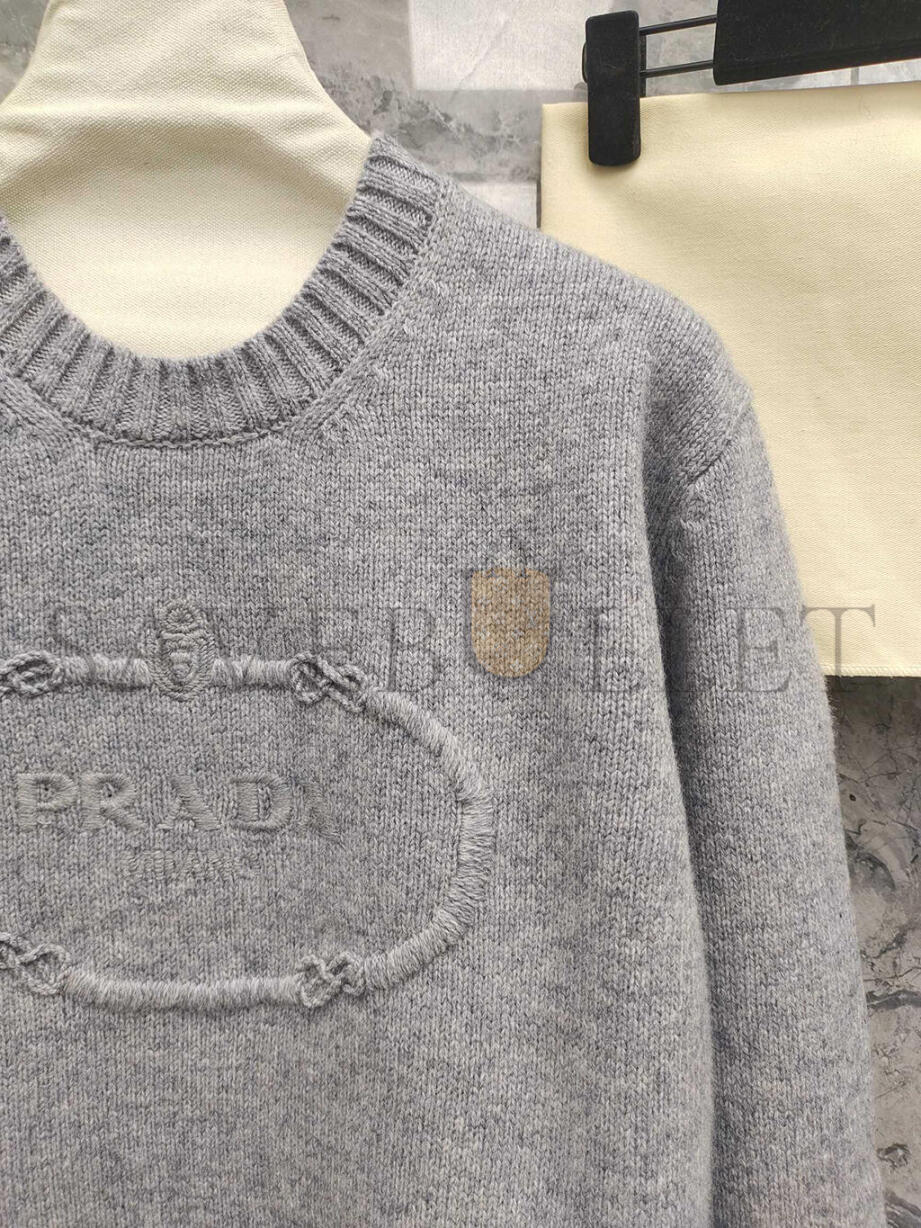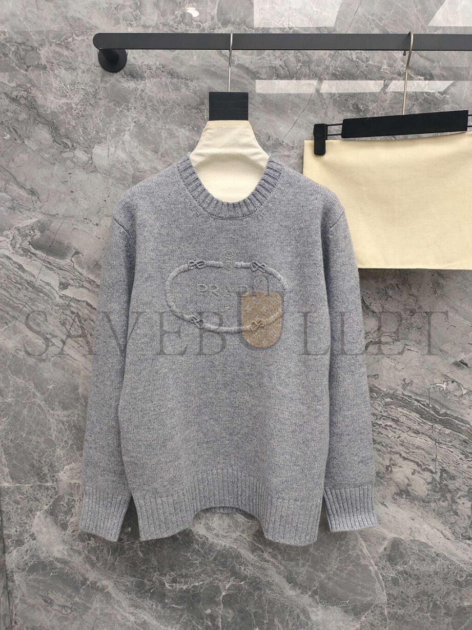 PRADA GREY WOOL AND CASHMERE CREW-NECK SWEATER