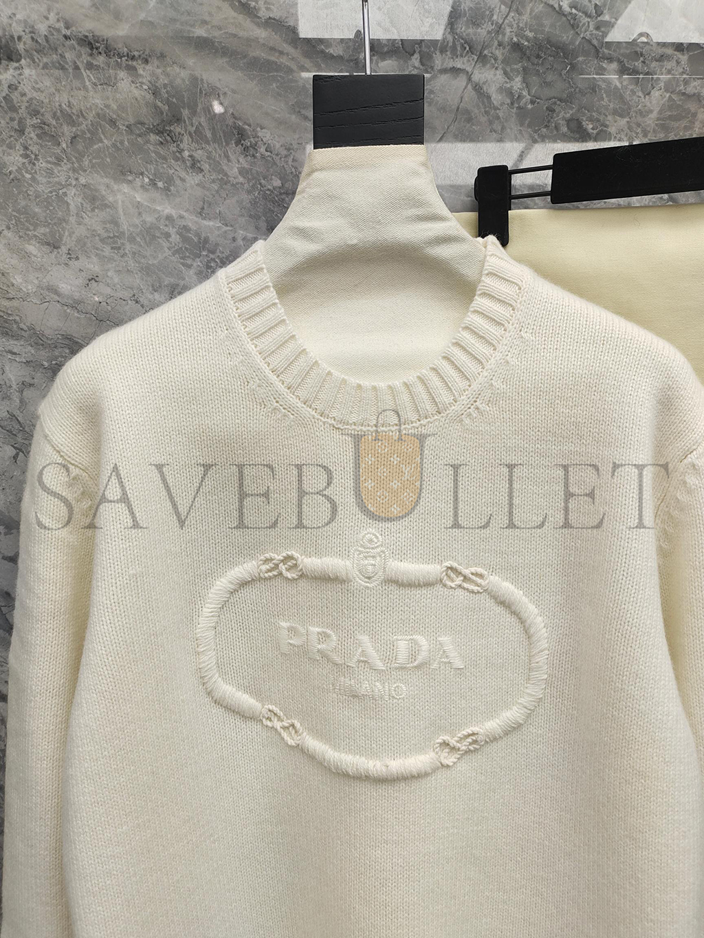 PRADA GREY WOOL AND CASHMERE CREW-NECK SWEATER