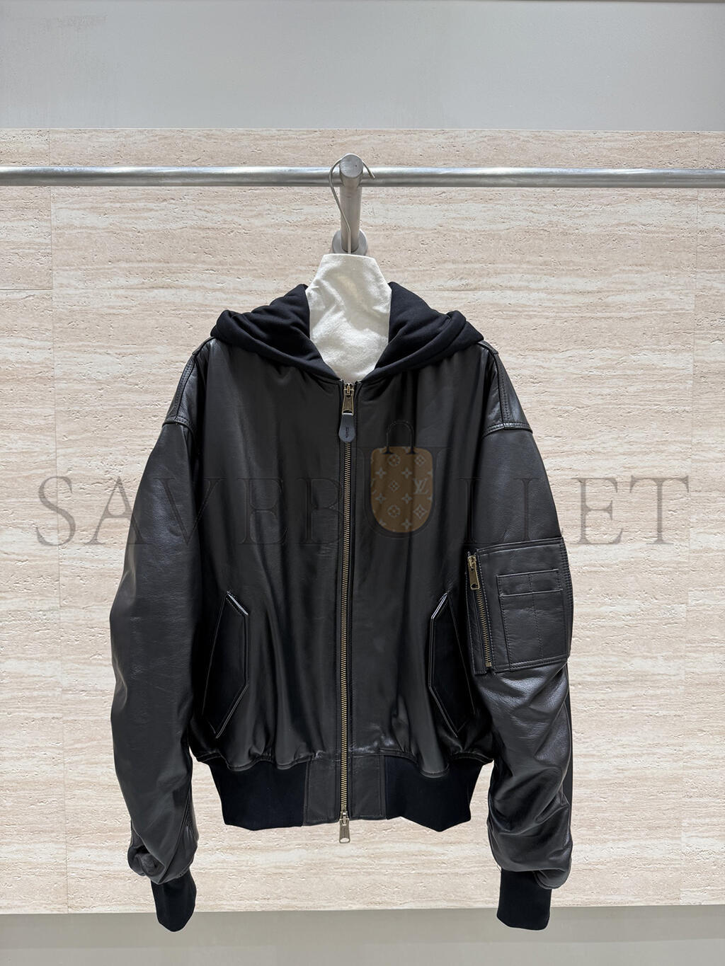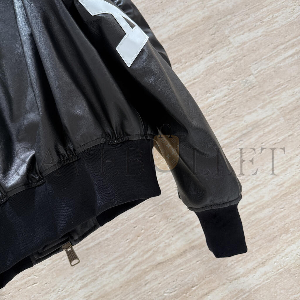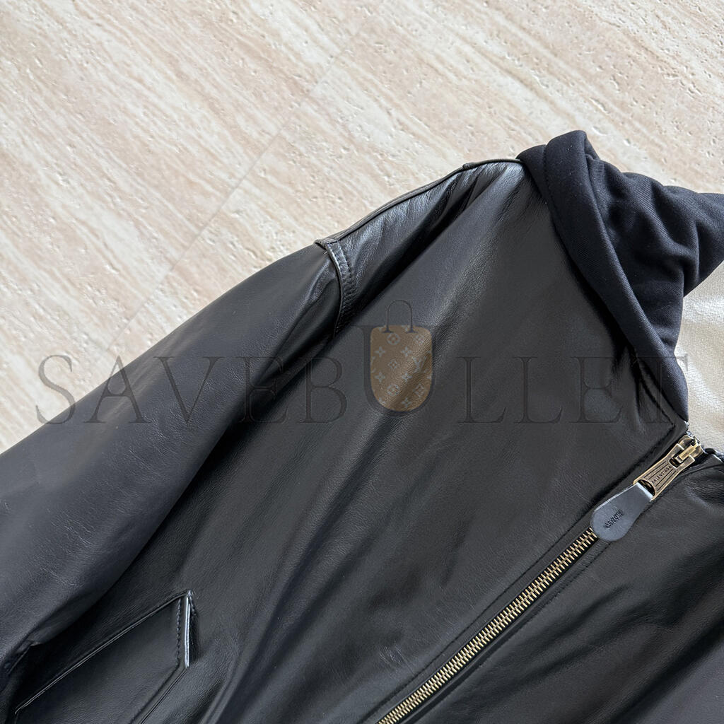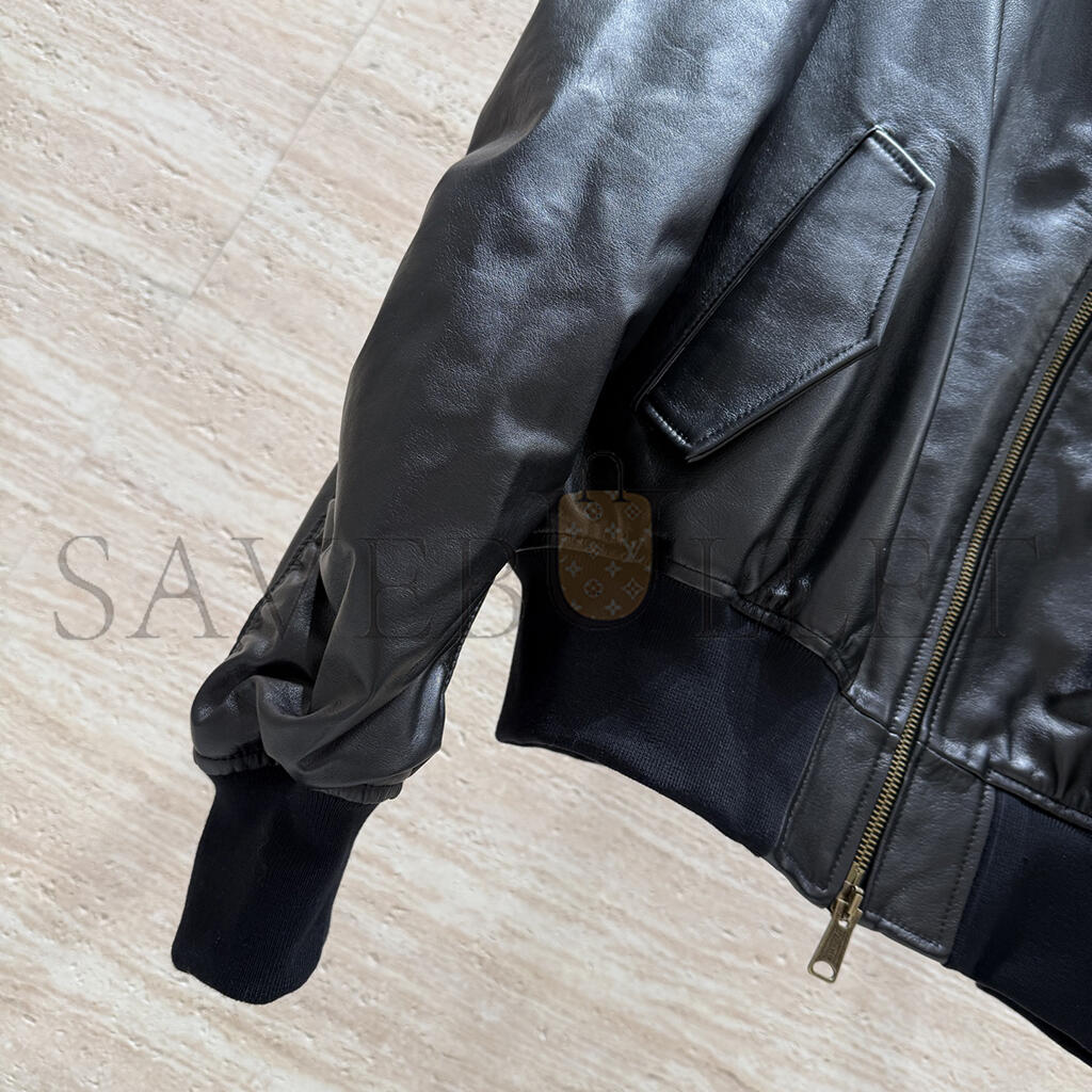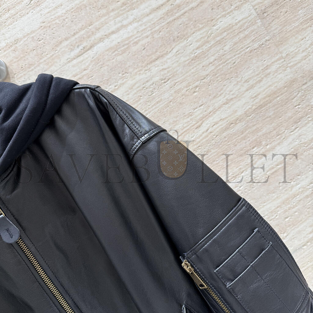 BALENCIAGA WOMEN'S BLACK OVERSIZED LEATHER BOMBER JACKET 768772TOS171000