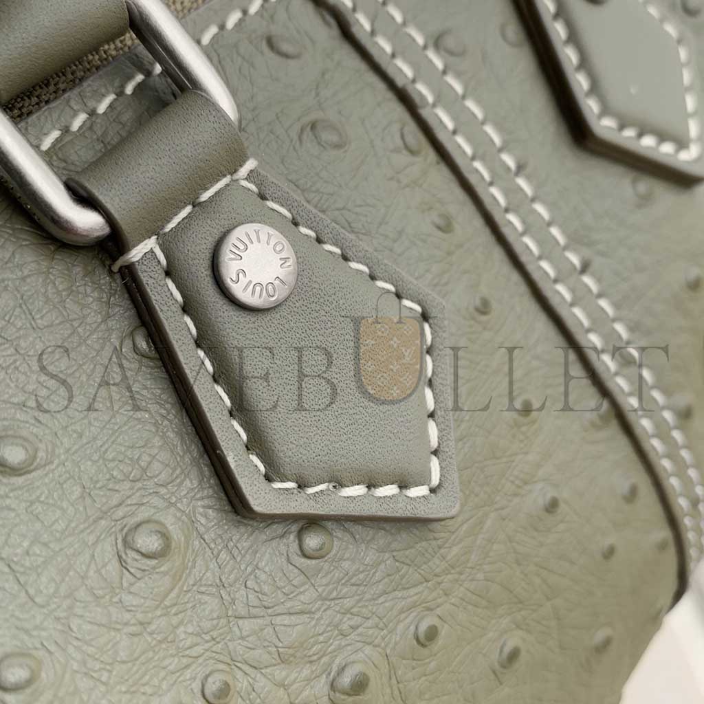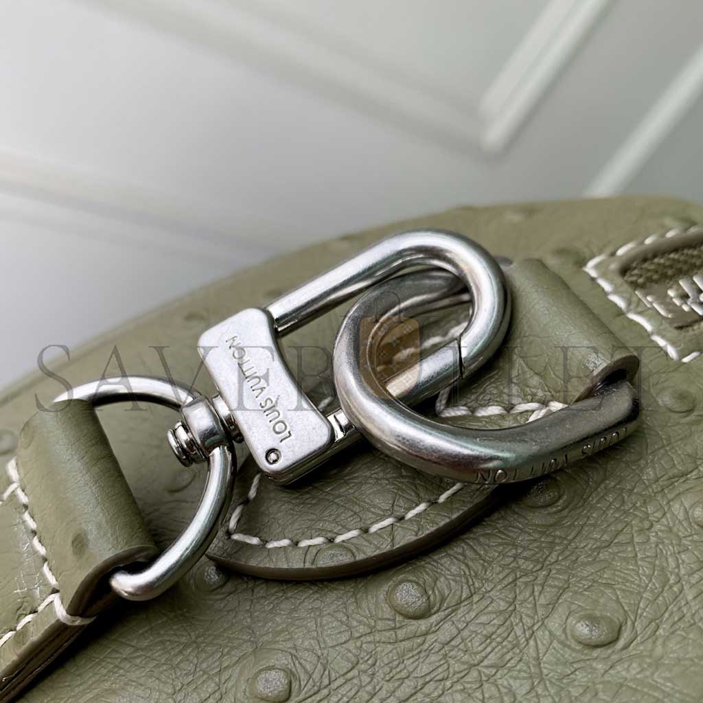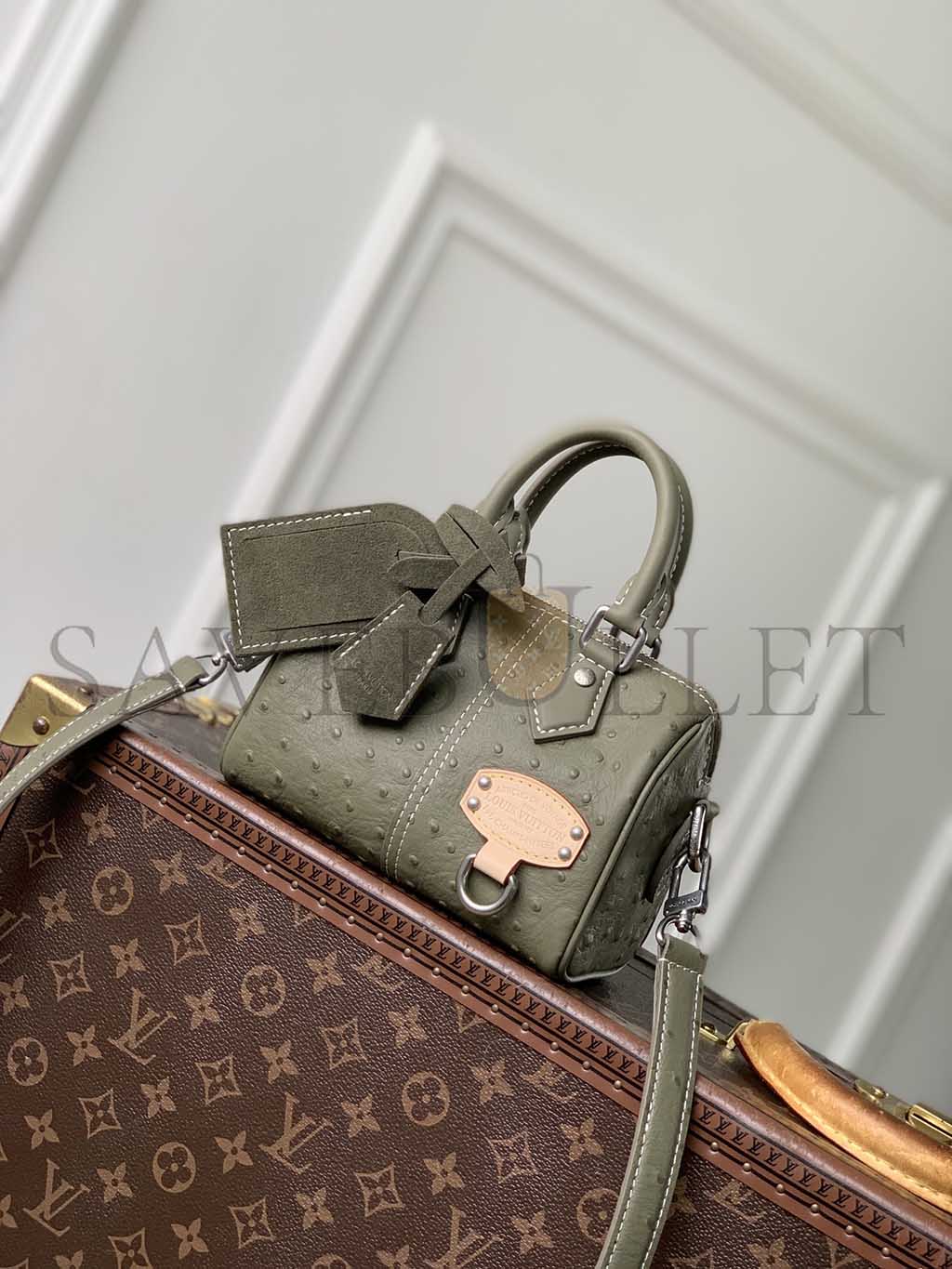 Ostrich leather, calfskin and suede trim