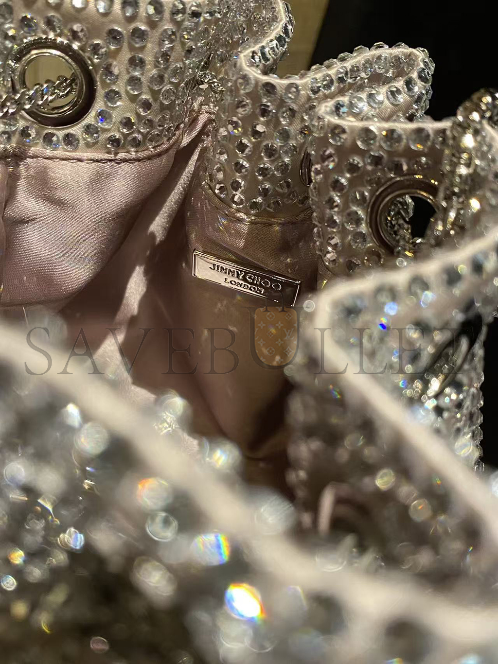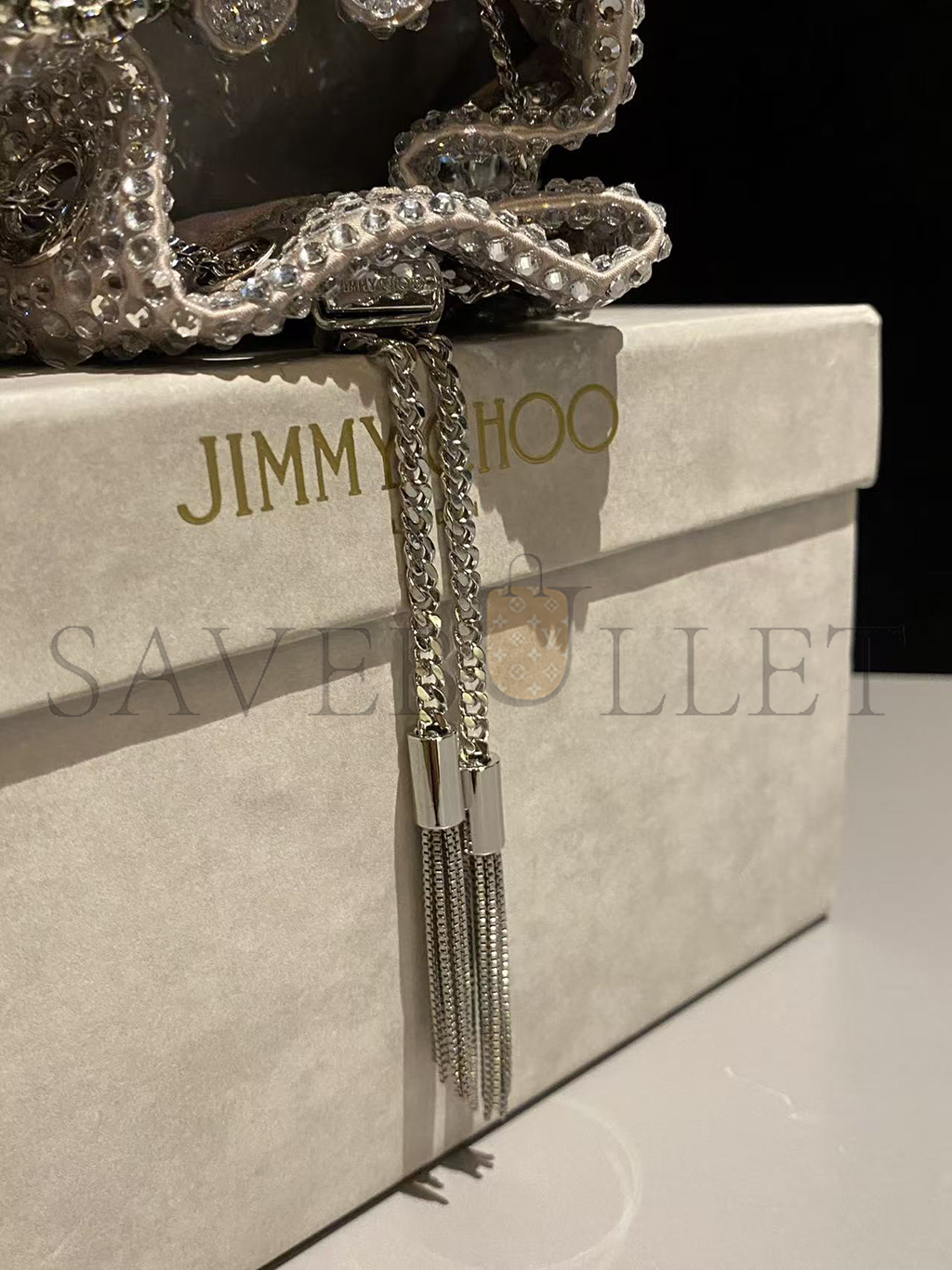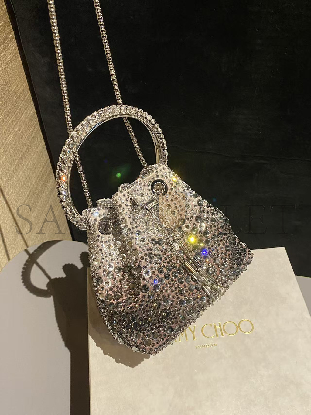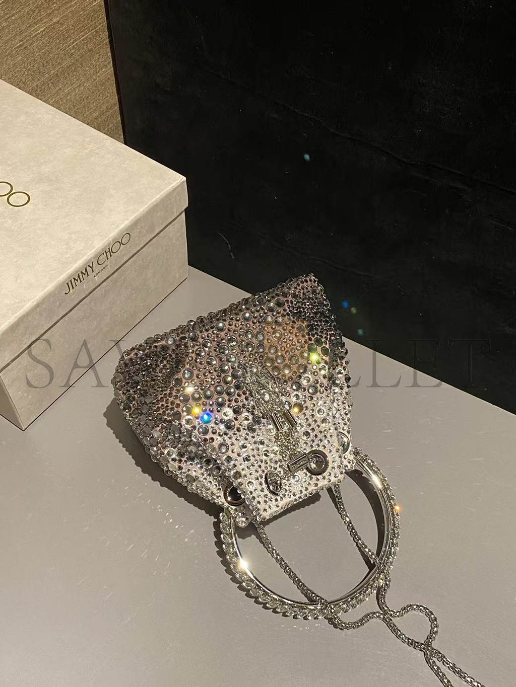 JIMMY CHOO BON BON GREY SATIN BAG WITH CRYSTALS (15*14*9.5cm)