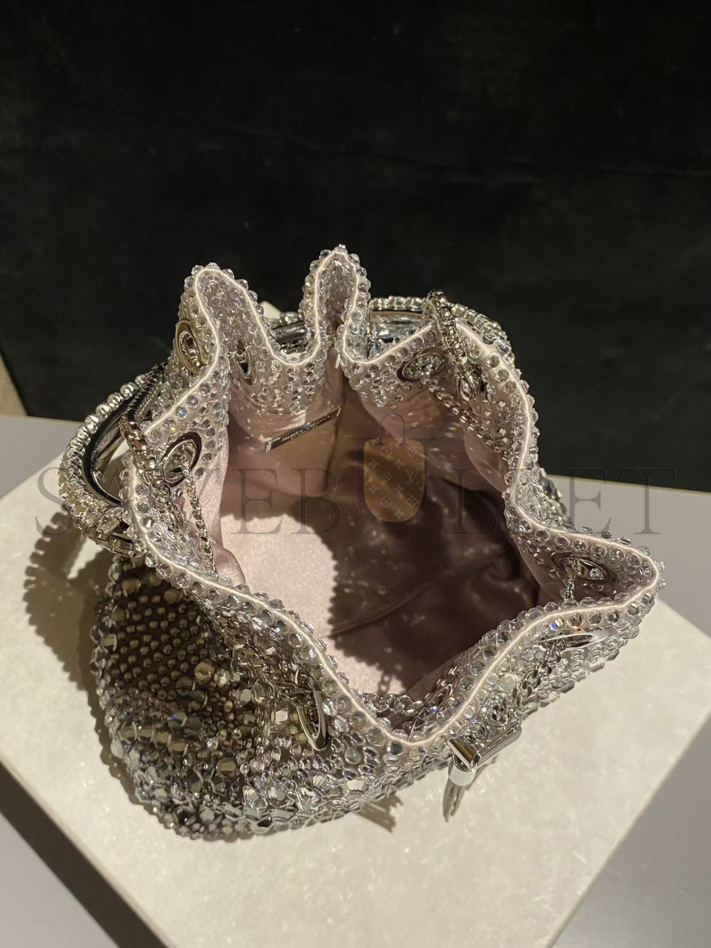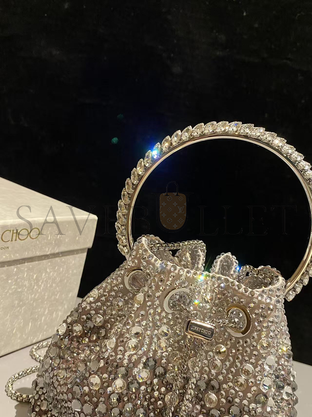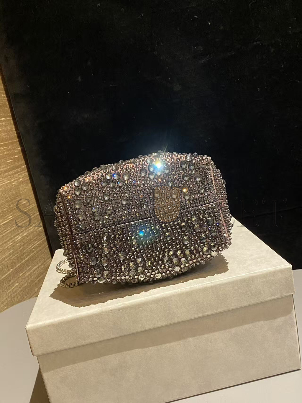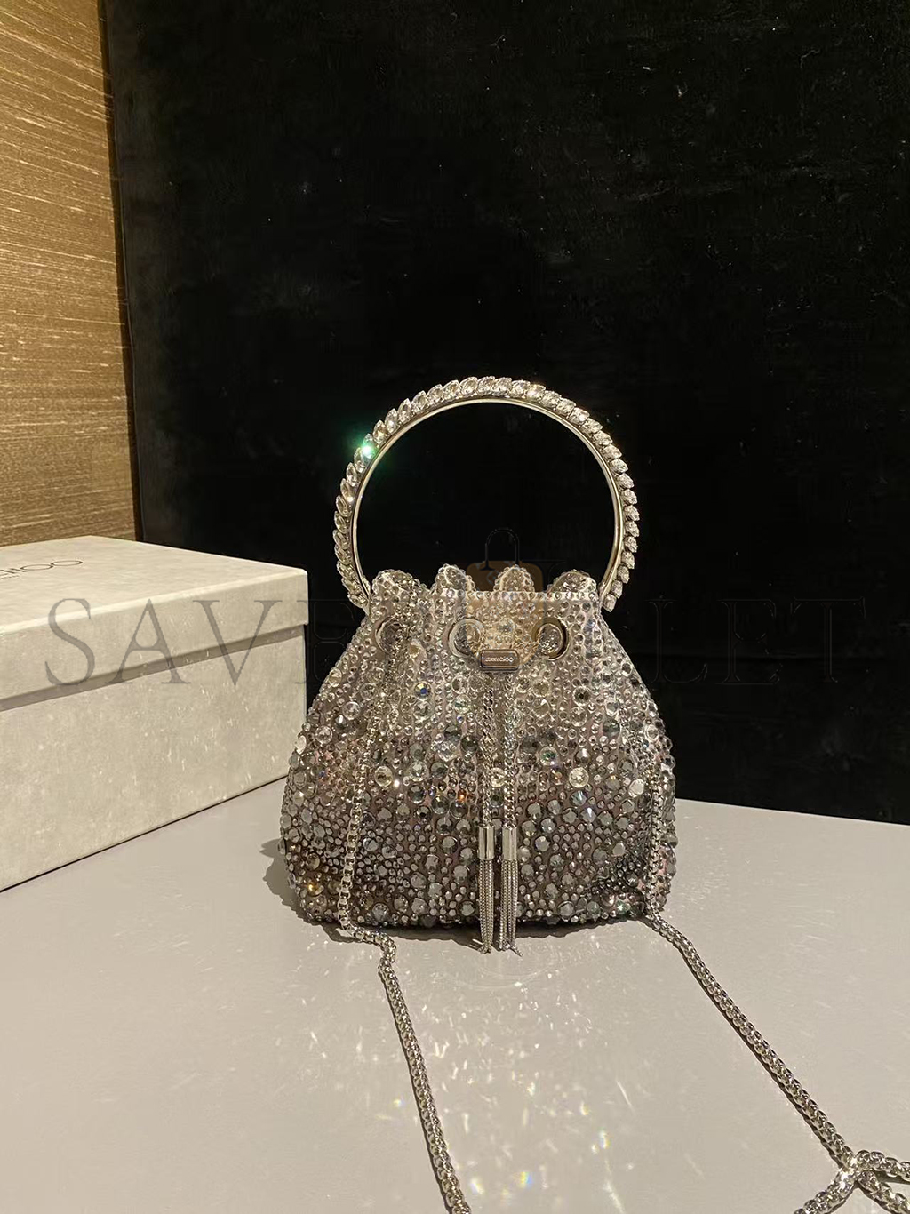 JIMMY CHOO BON BON GREY SATIN BAG WITH CRYSTALS (15*14*9.5cm)