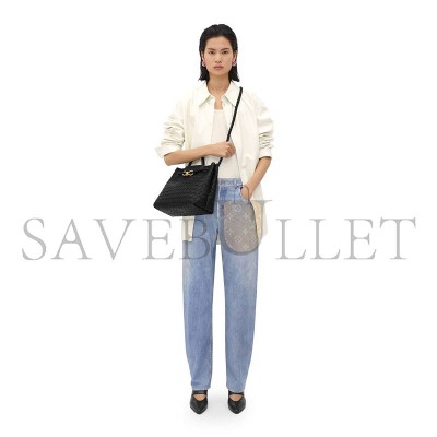 Large grained leather shoulder bagIntrecciato leather detachable mirror charmIntrecciato internal zipped pocketLeather tie closure with hidden magnetLining: Calf leatherColor: BlackHardware: Brass finishProduct code: 844251V5XH01019..