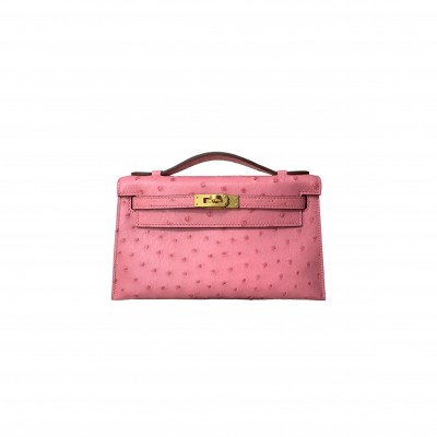HERMÈS MASTER OSTRICH KELLY POCHETTE WITH GOLD HARDWARE (22*14*7cm)