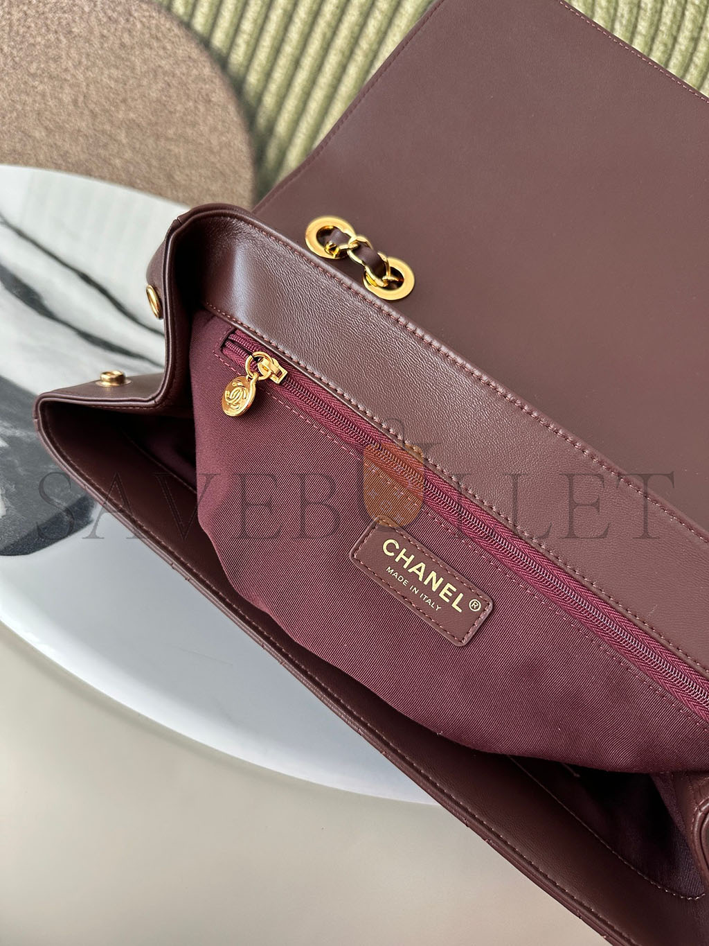 CHANEL MASTER BURGUNDY QUILTED LEATHER VINTAGE CC FLAP BAG A2215 (33*23*11cm)