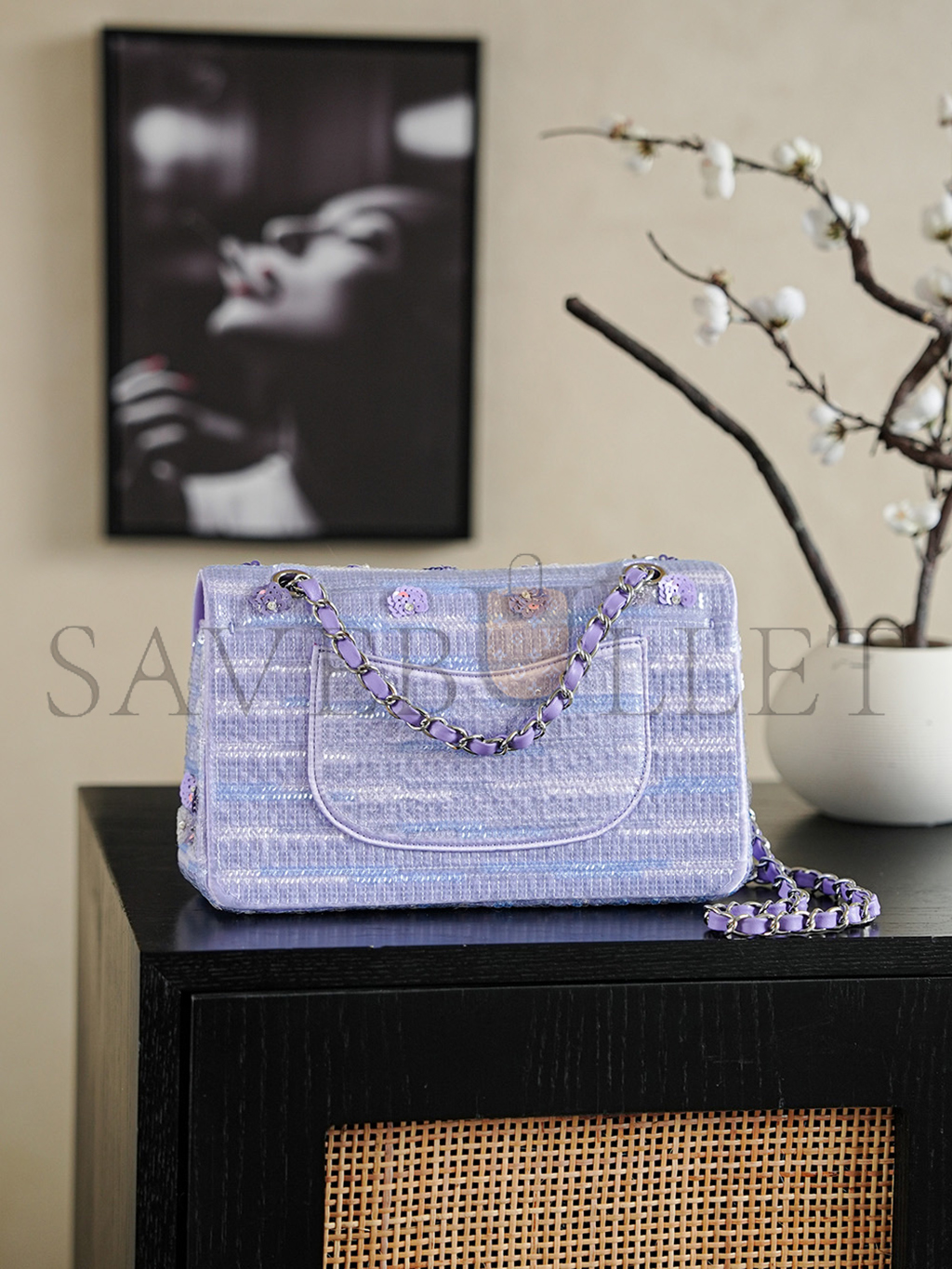CHANEL 26C VIOLET SEQUINS CLASSIC FLAP BAG A01112 (25.5*15.5*6.5cm)