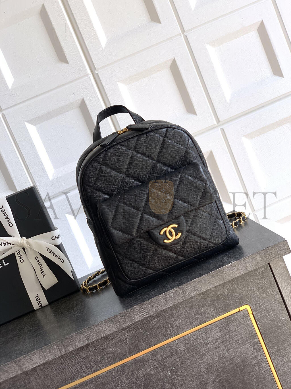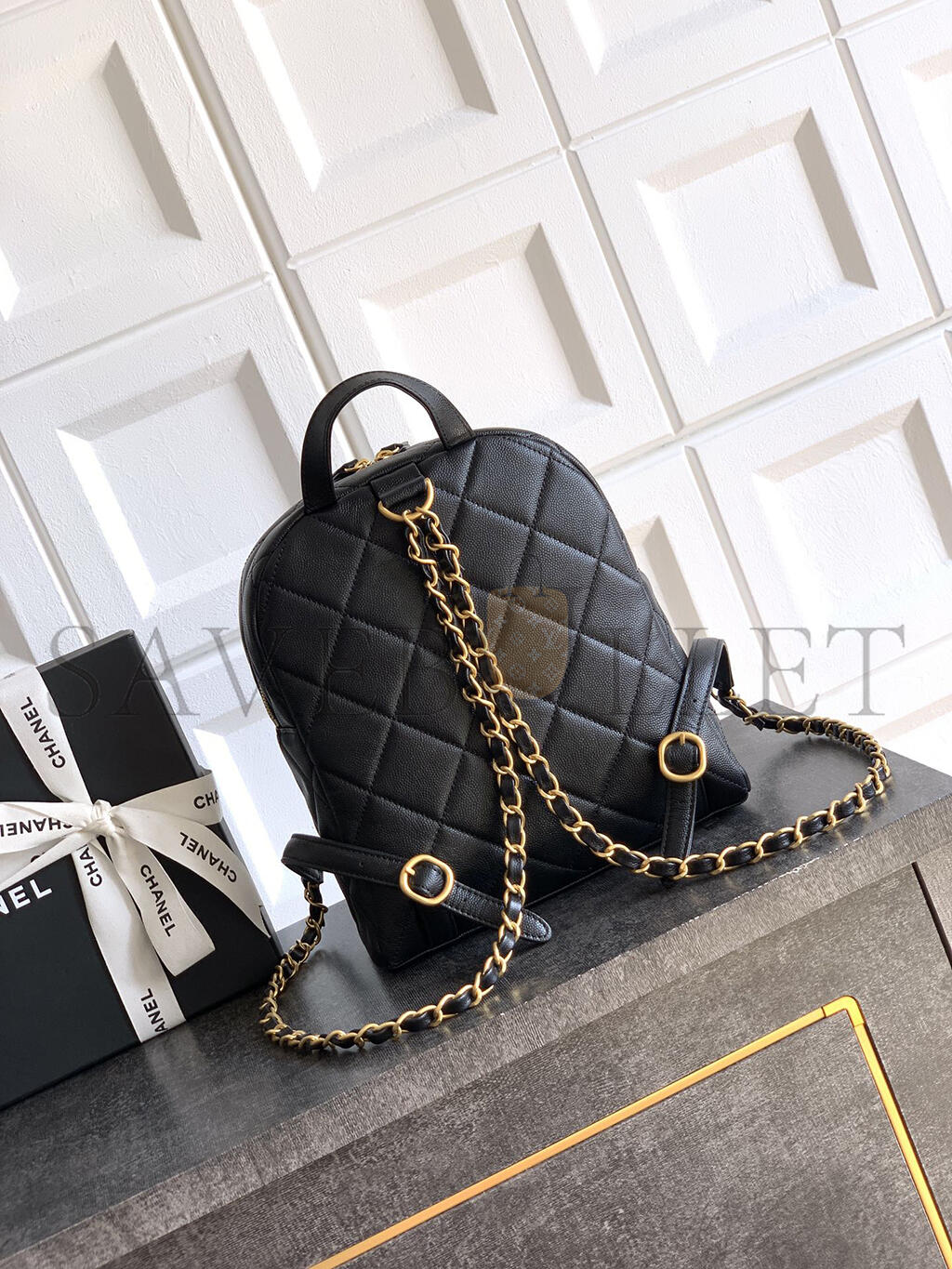 CHANEL 25K BLACK BACKPACK AS5793 (22.5*22*8.5cm)