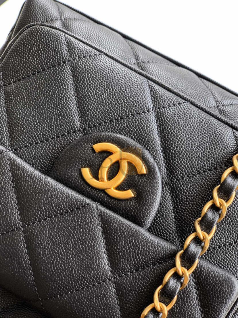 CHANEL MASTER CAVIAR QUILTED RETRO TWIST TOP HANDLE FLAP BLACK (21*16*9.5cm)