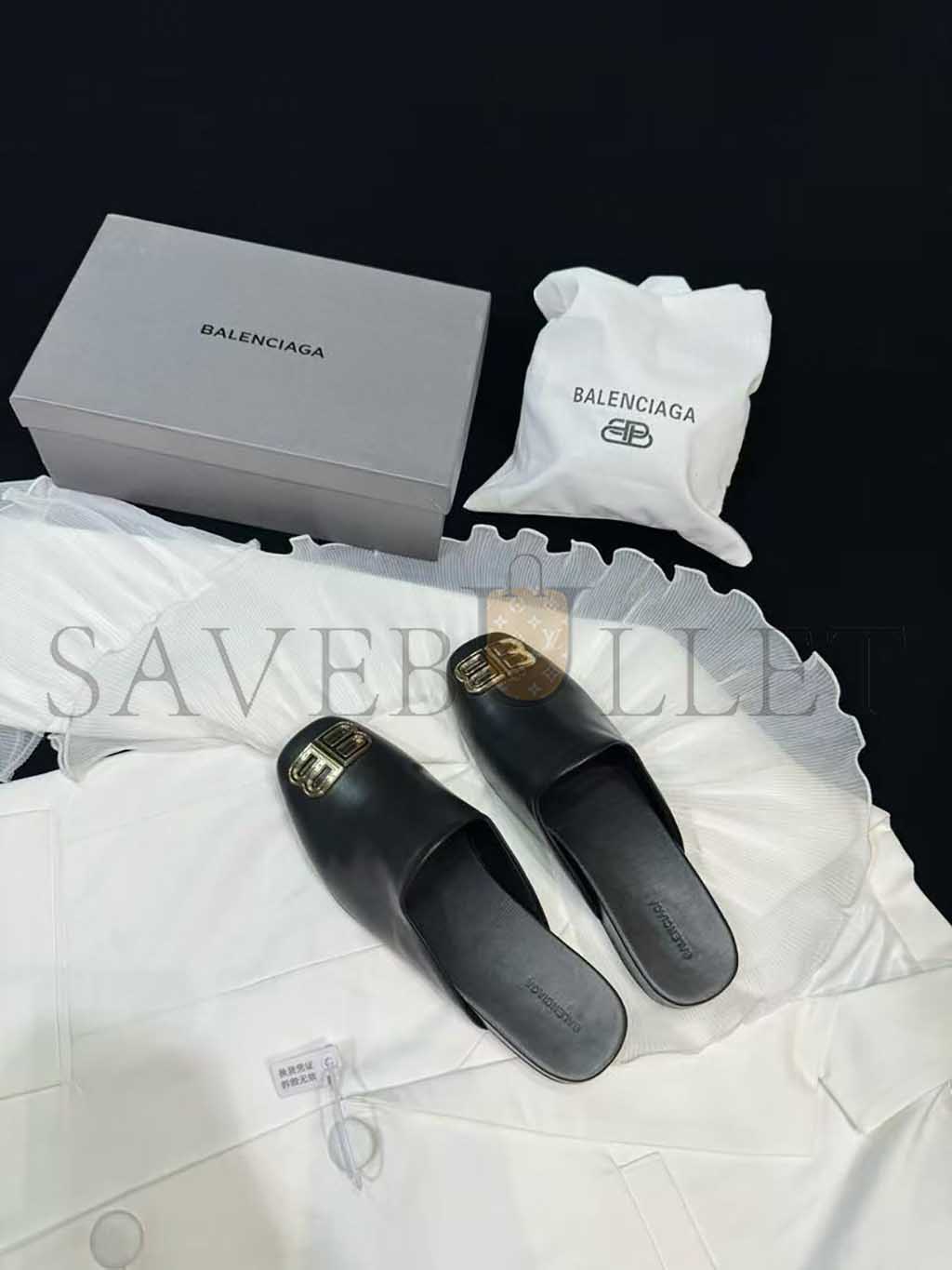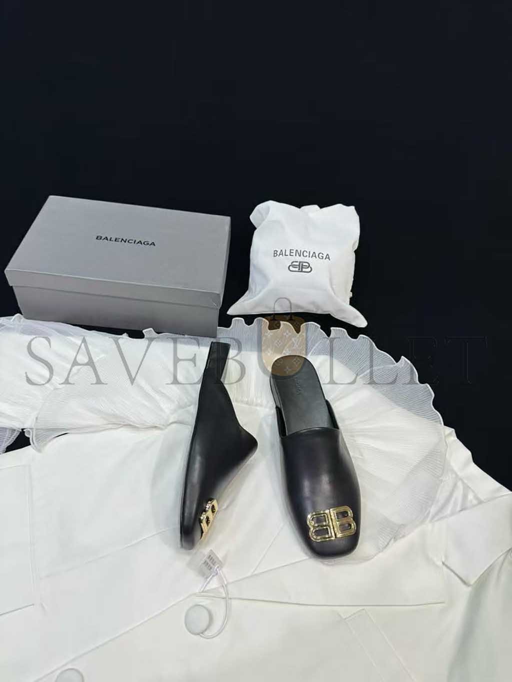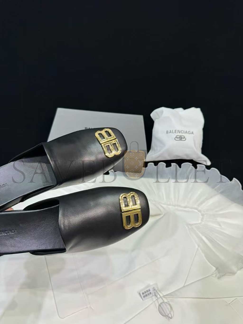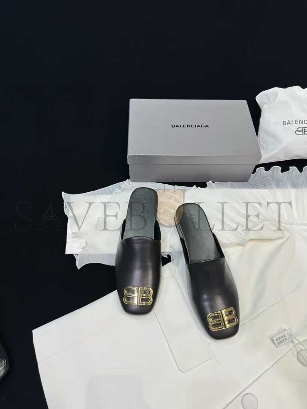 BALENCIAGA LEATHER COSY BB MULES BLACK