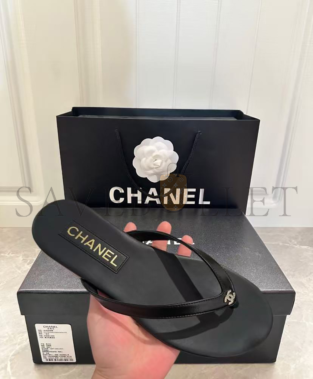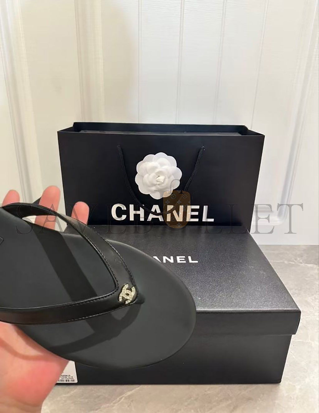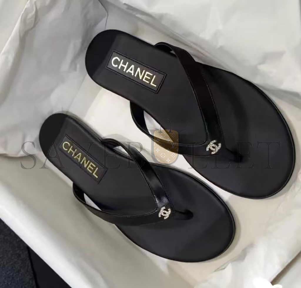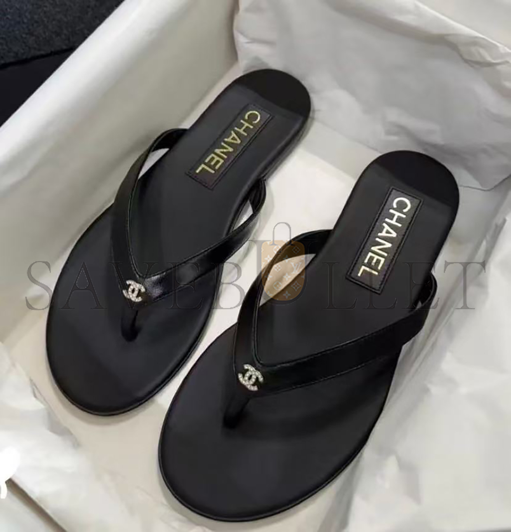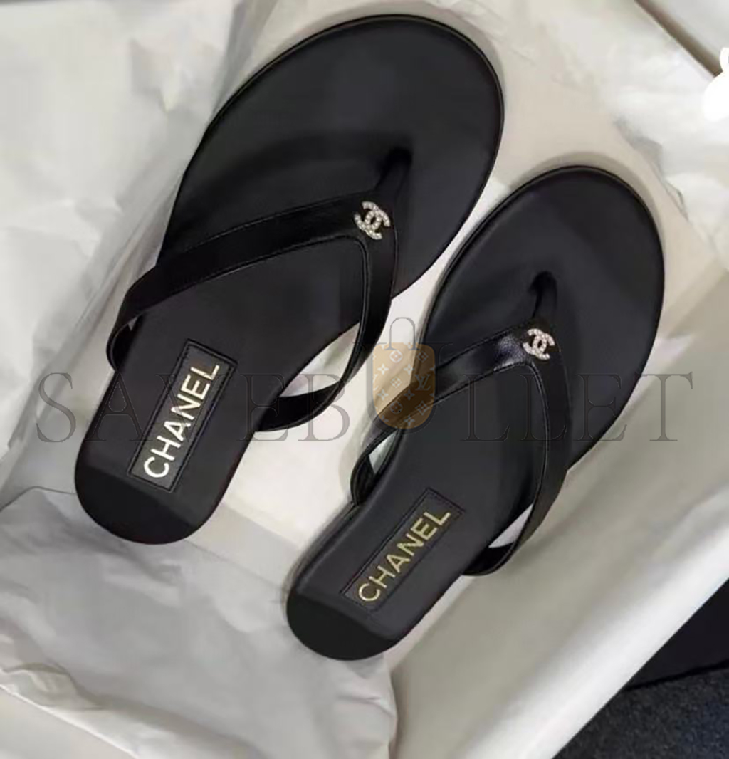 CHANEL LAMBSKIN CRYSTAL CC THONG SANDALS
