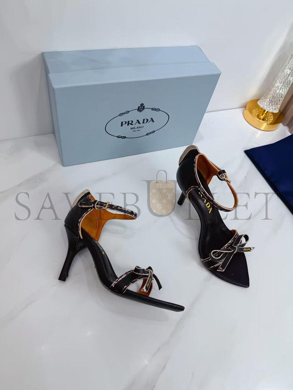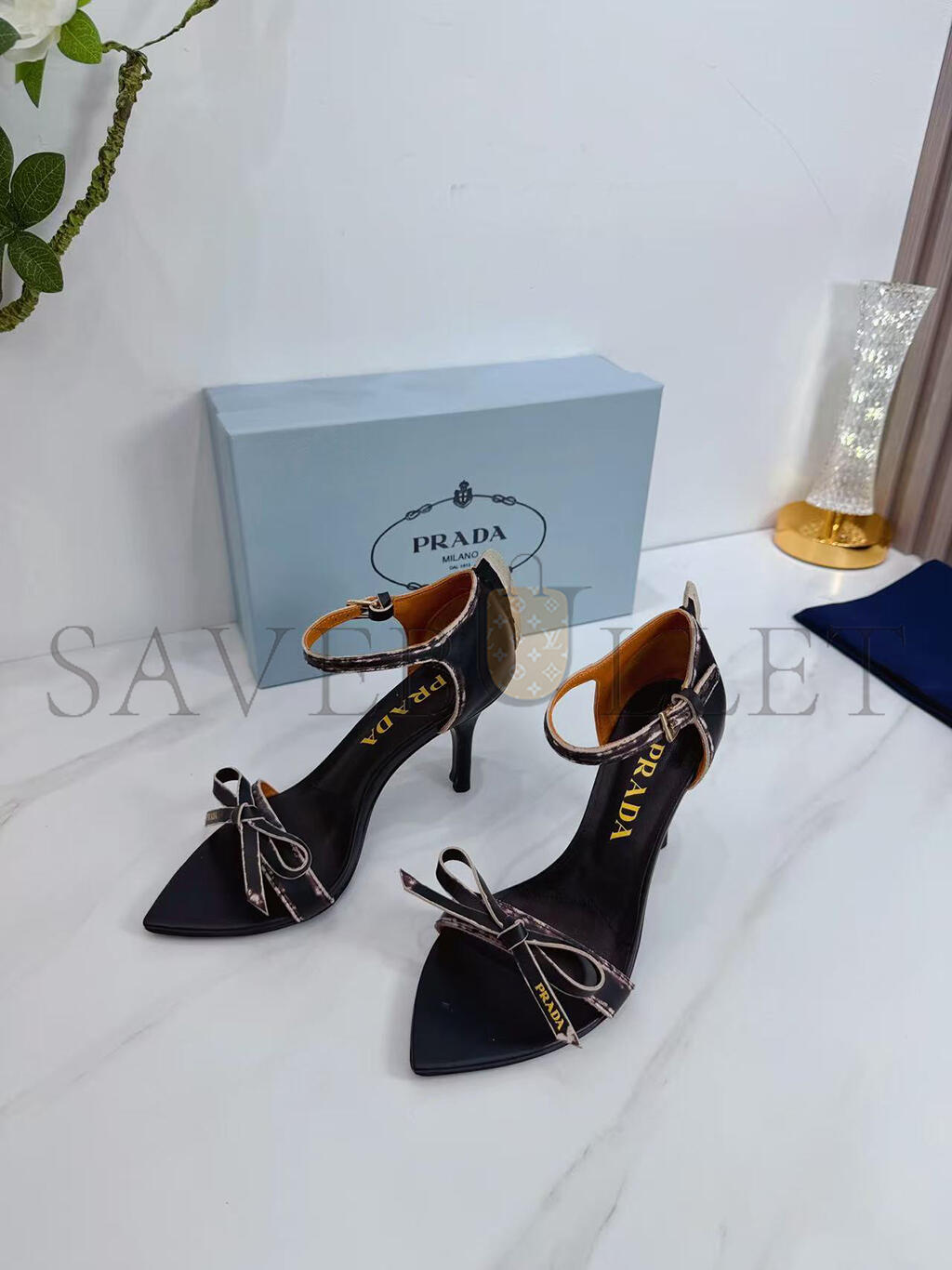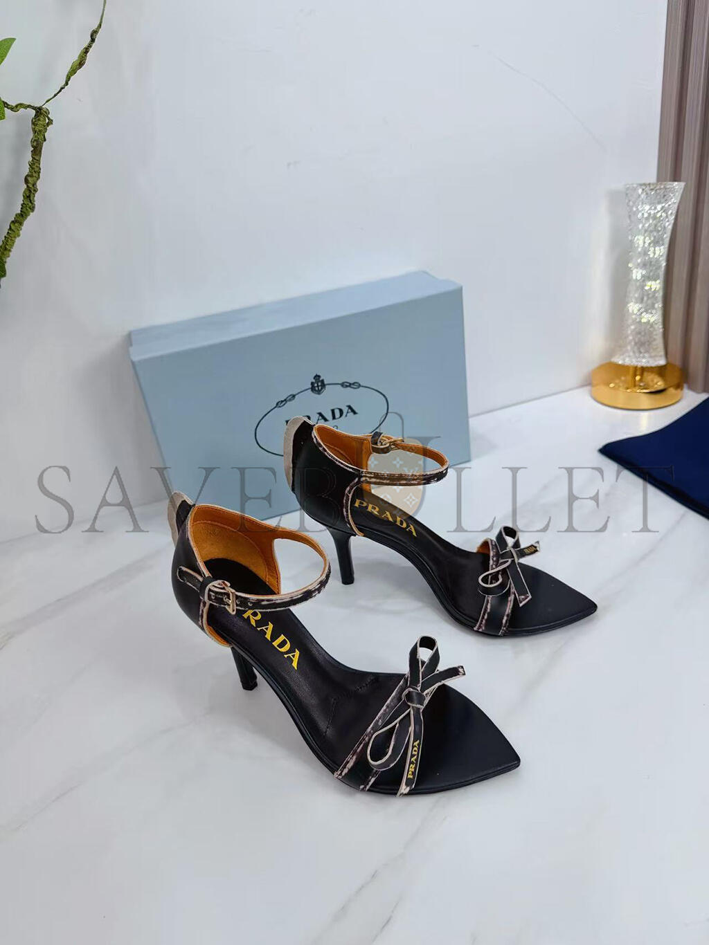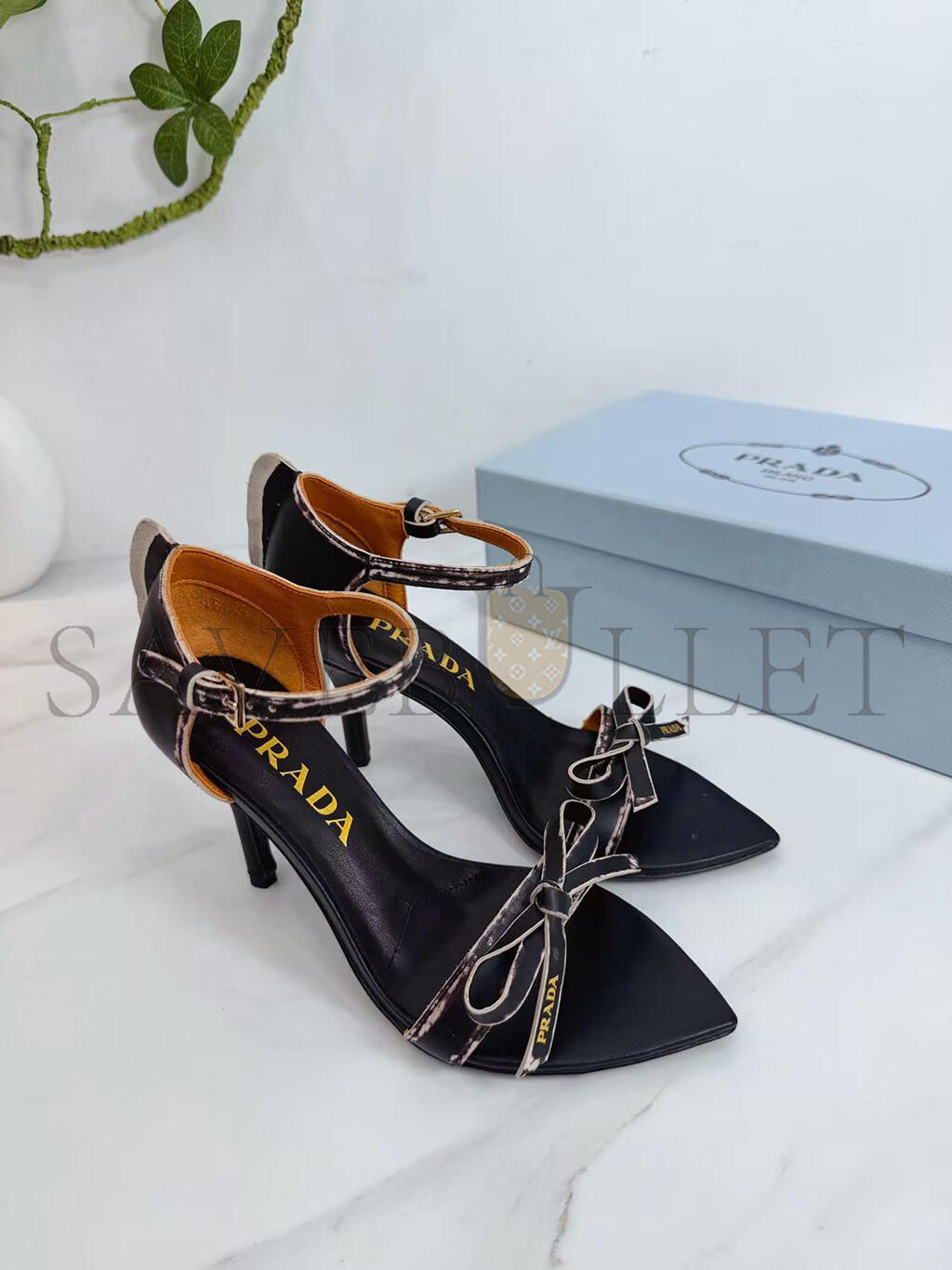 PRADA LEATHER BOW SANDALS WITH POINTED TOE 1X196O