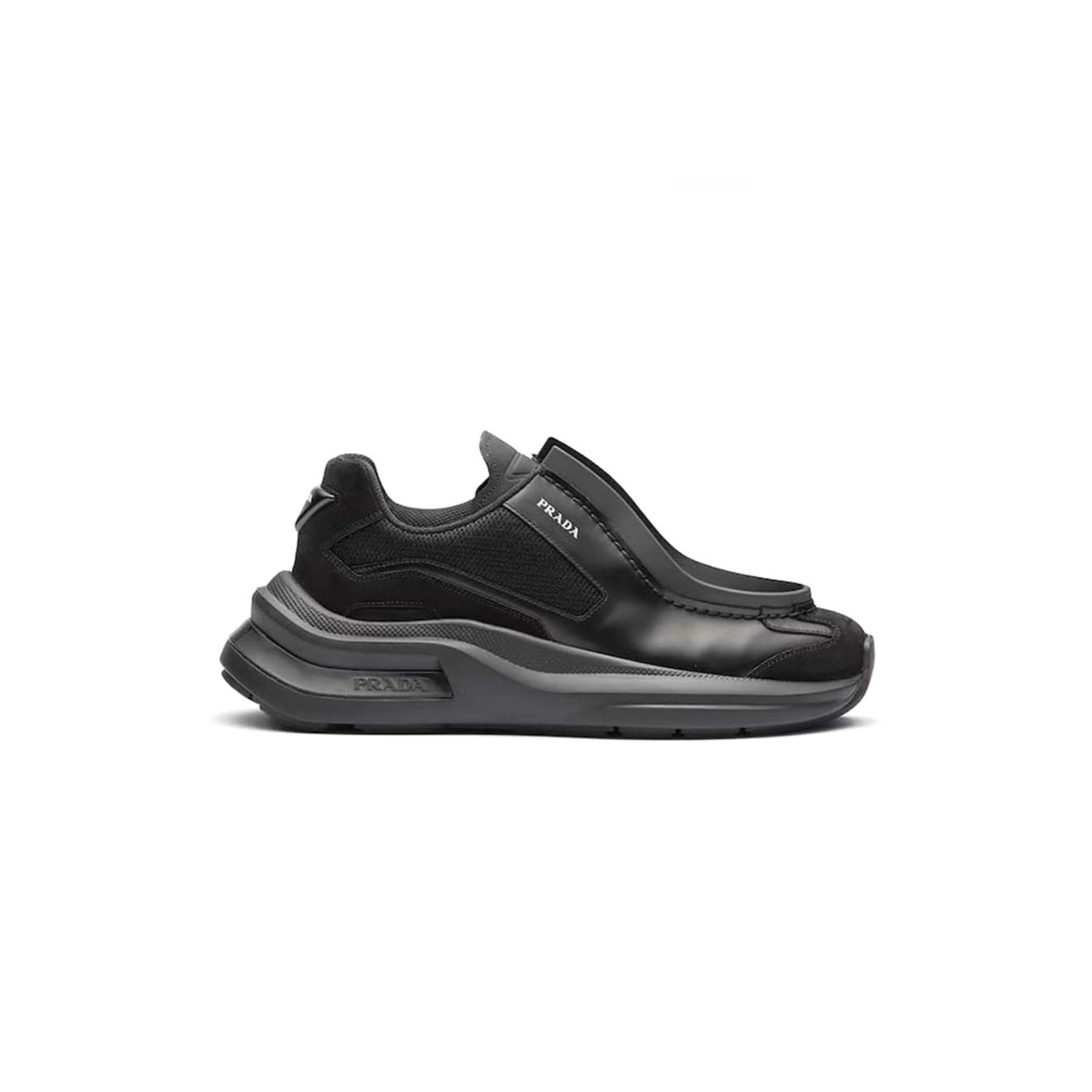 Product code: 3E6420_ASZ_F0505_F_B025Technical fabric liningPrada Linea Rossa latex logo badgeFlat cotton laces25 mm rubber soleTread with optical patternRemovable leather-lined insole..