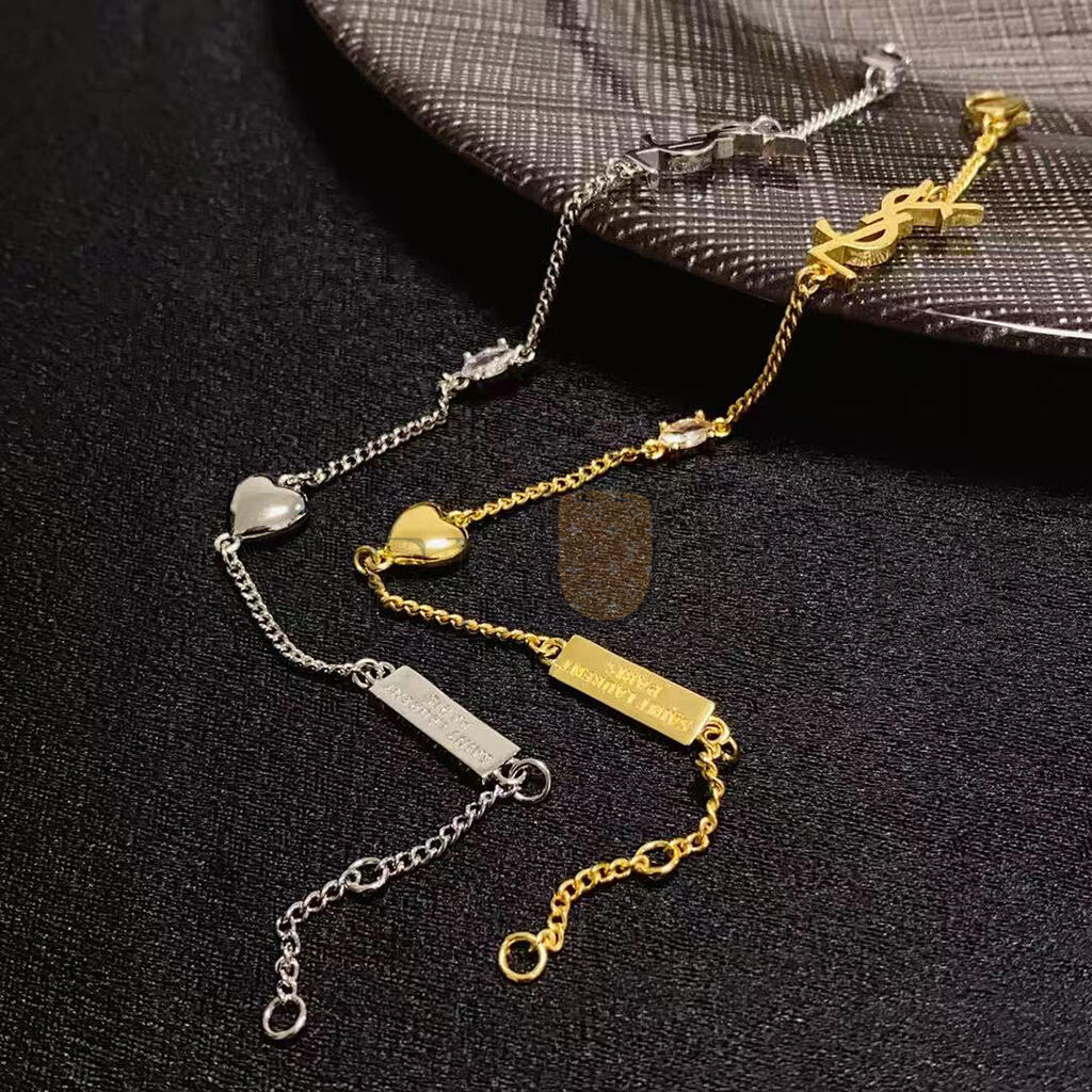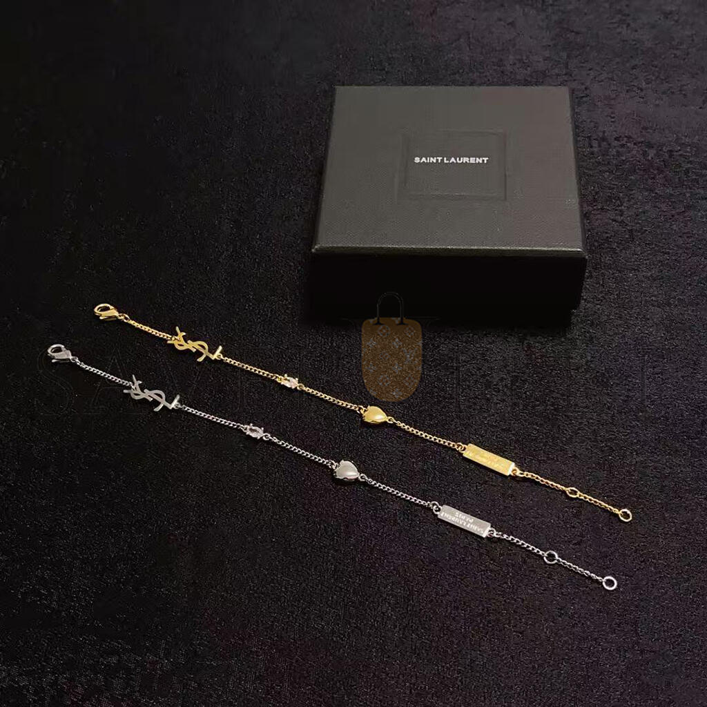 YSL CASSANDRE HEART CHARM BRACELET IN METAL AND RHINESTONE 701950