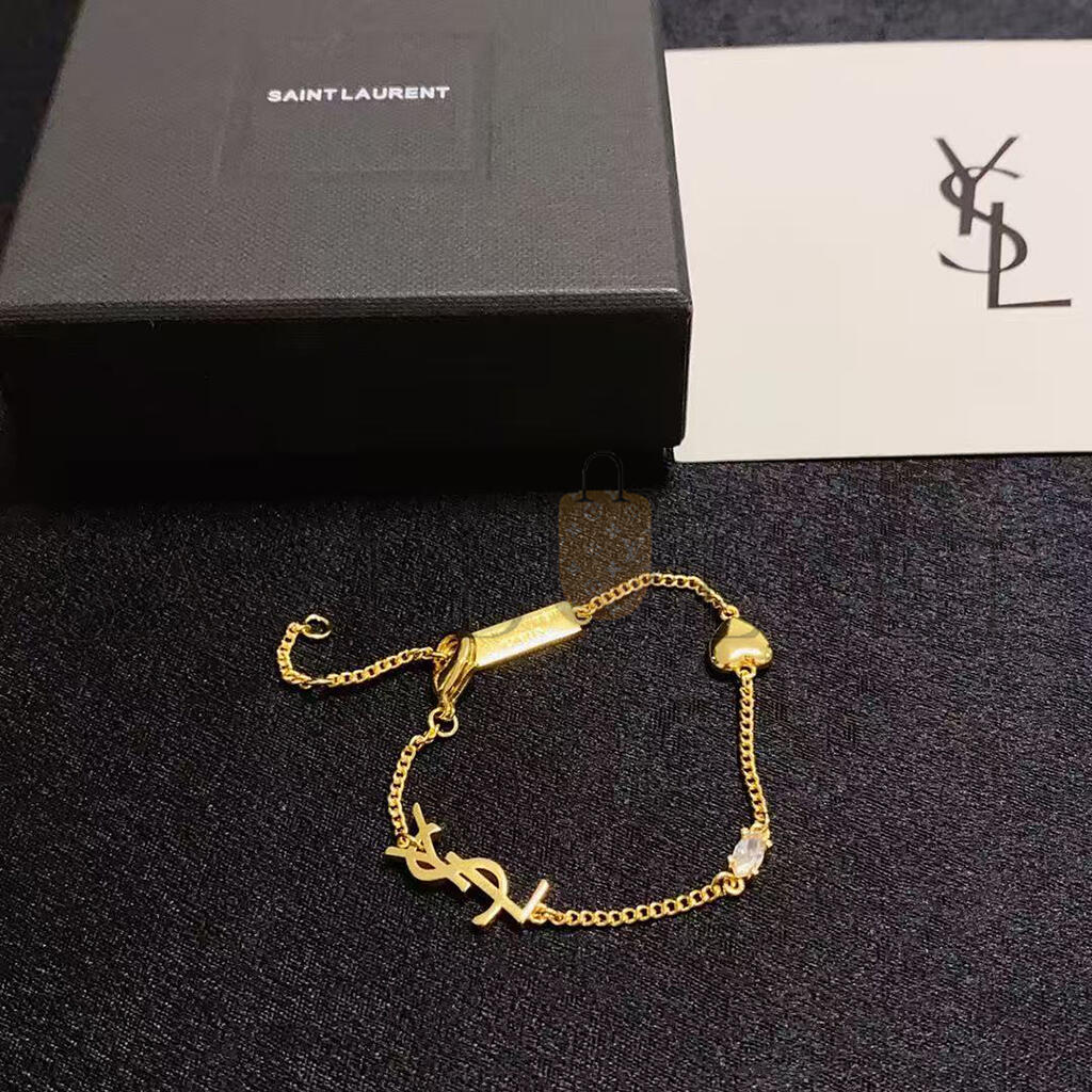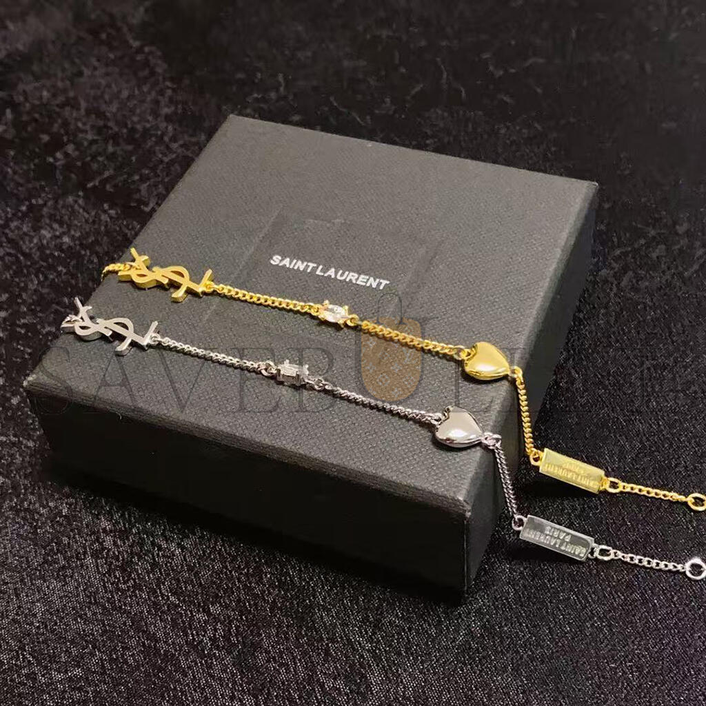 YSL CASSANDRE HEART CHARM BRACELET IN METAL AND RHINESTONE 701950Y15269137