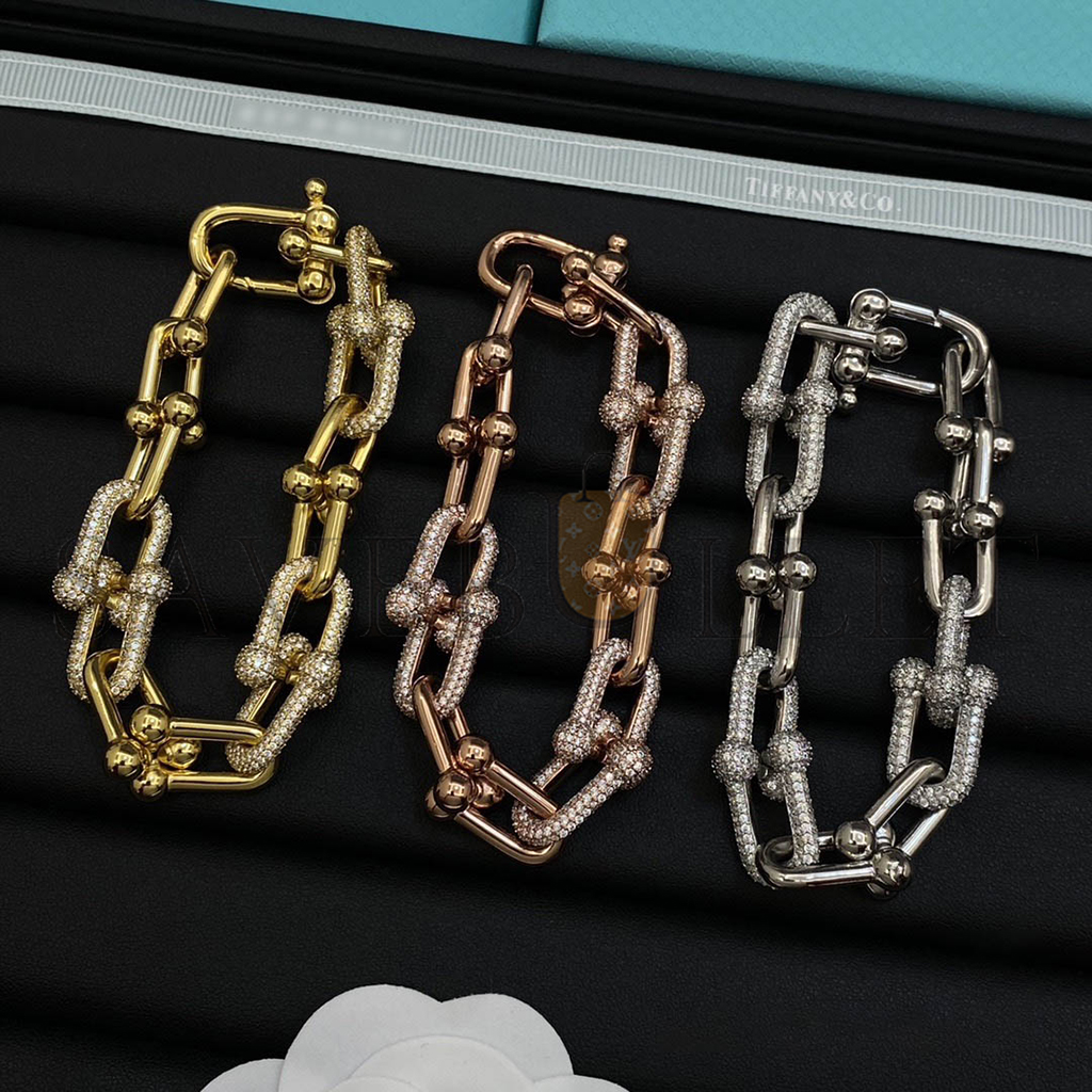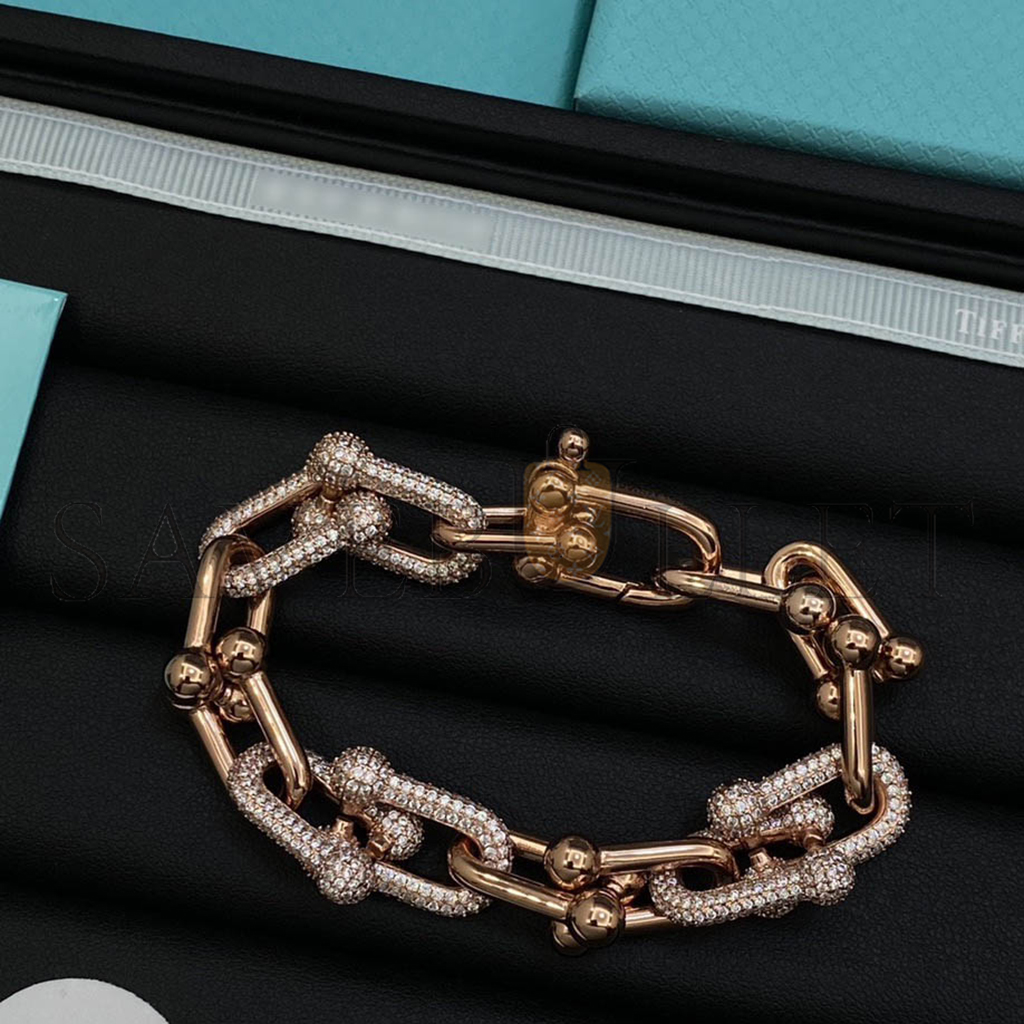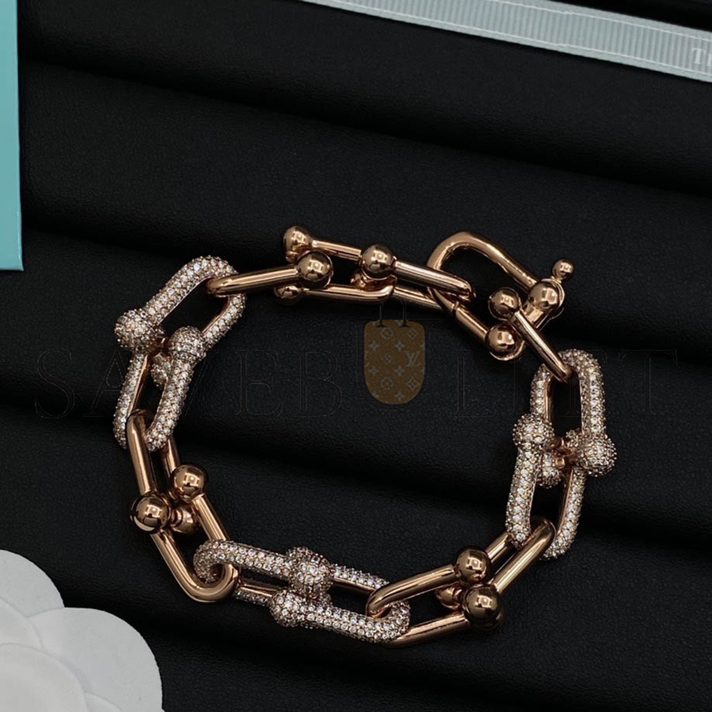 TIFFANY HARDWEAR LARGE LINK BRACELET IN ROSE GOLD WITH PAVE DIAMONDS 70751089