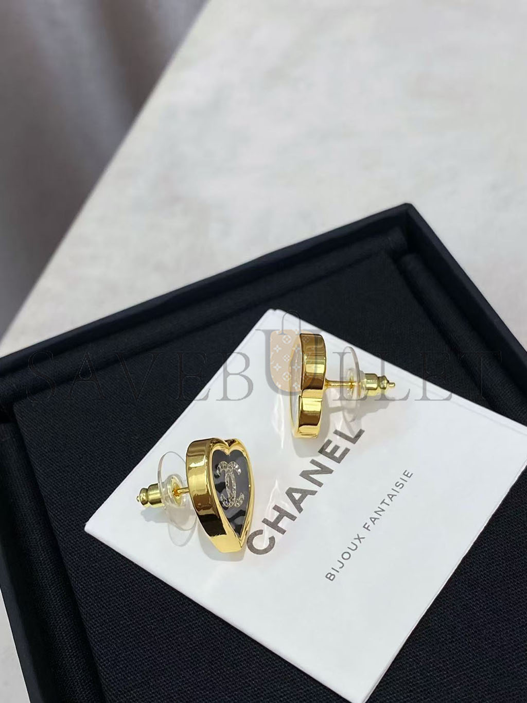 CHANEL HEART HEART BLACK GOLD EARRINGS ABG311