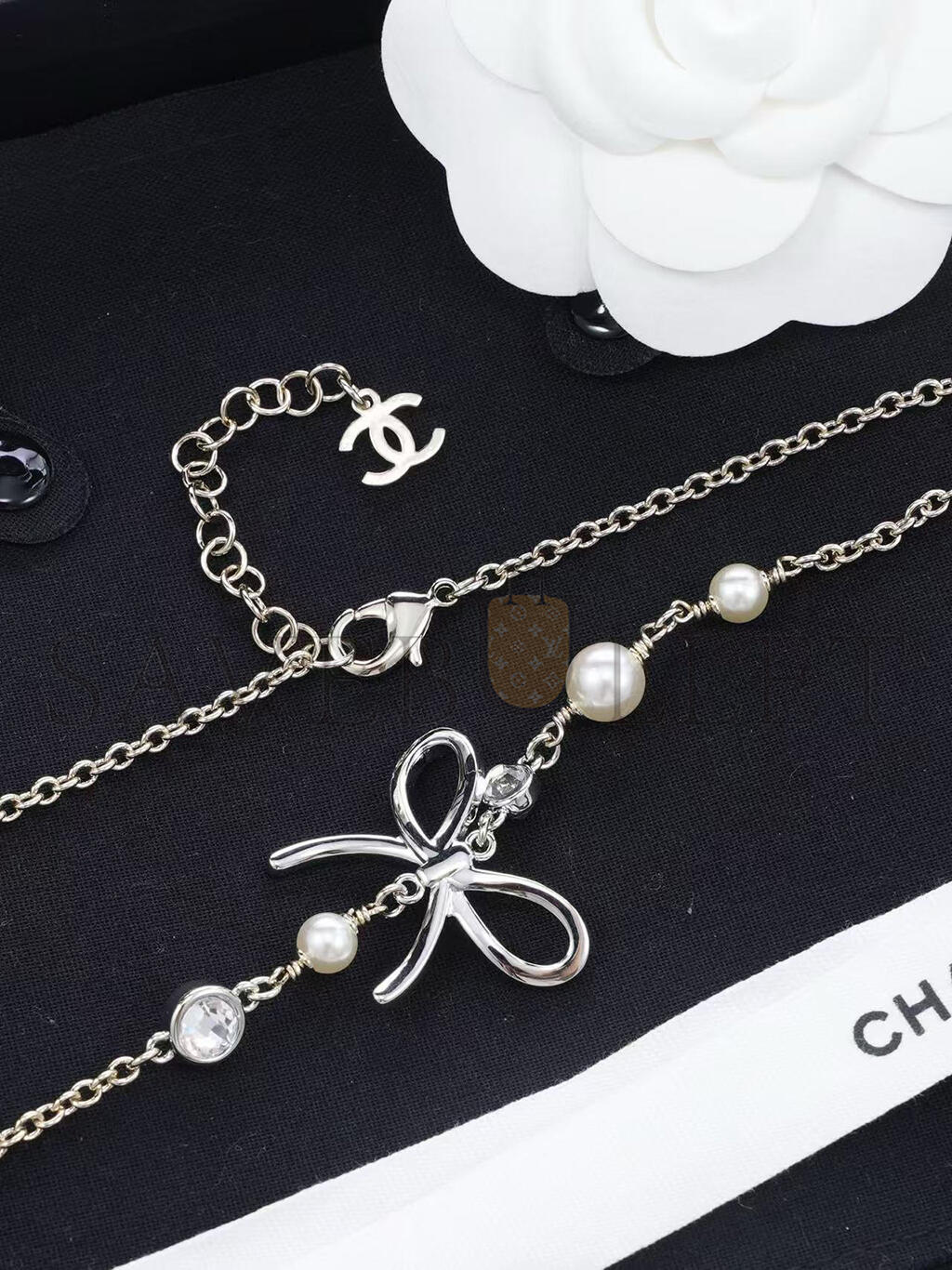 CHANEL BOW AND DOUBLE C LONG NECKLACE