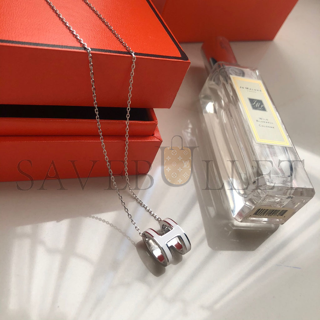 HERMÈS LACQUERED PALLADIUM POP H PENDANT NECKLACE WHITE