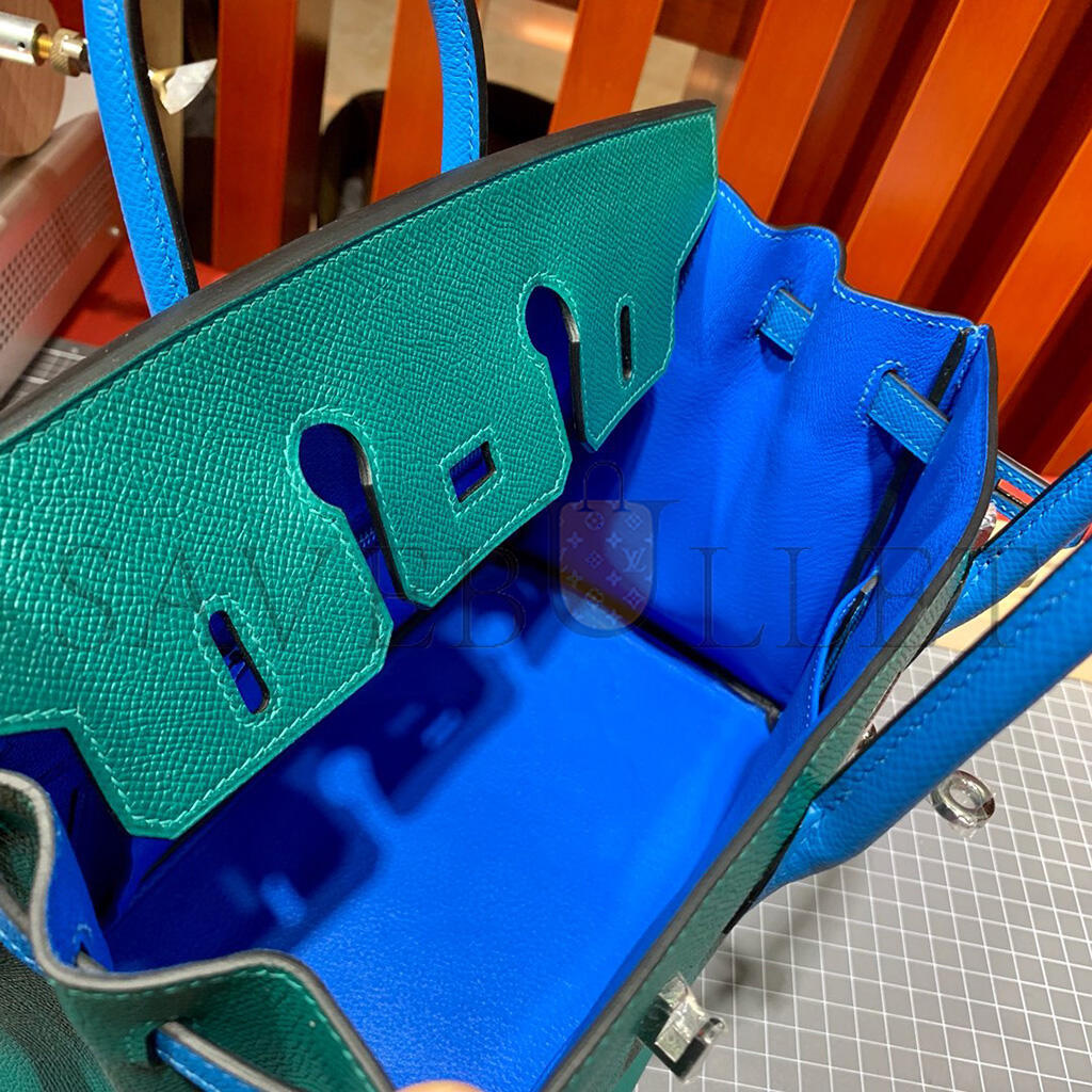 HERMÈS BIRKIN 25 EPSOM MALACHITE GREEN AND WATER FAIRY BLUE SILVER BUCKLE BAG H028369CK73 (25*18*13cm)