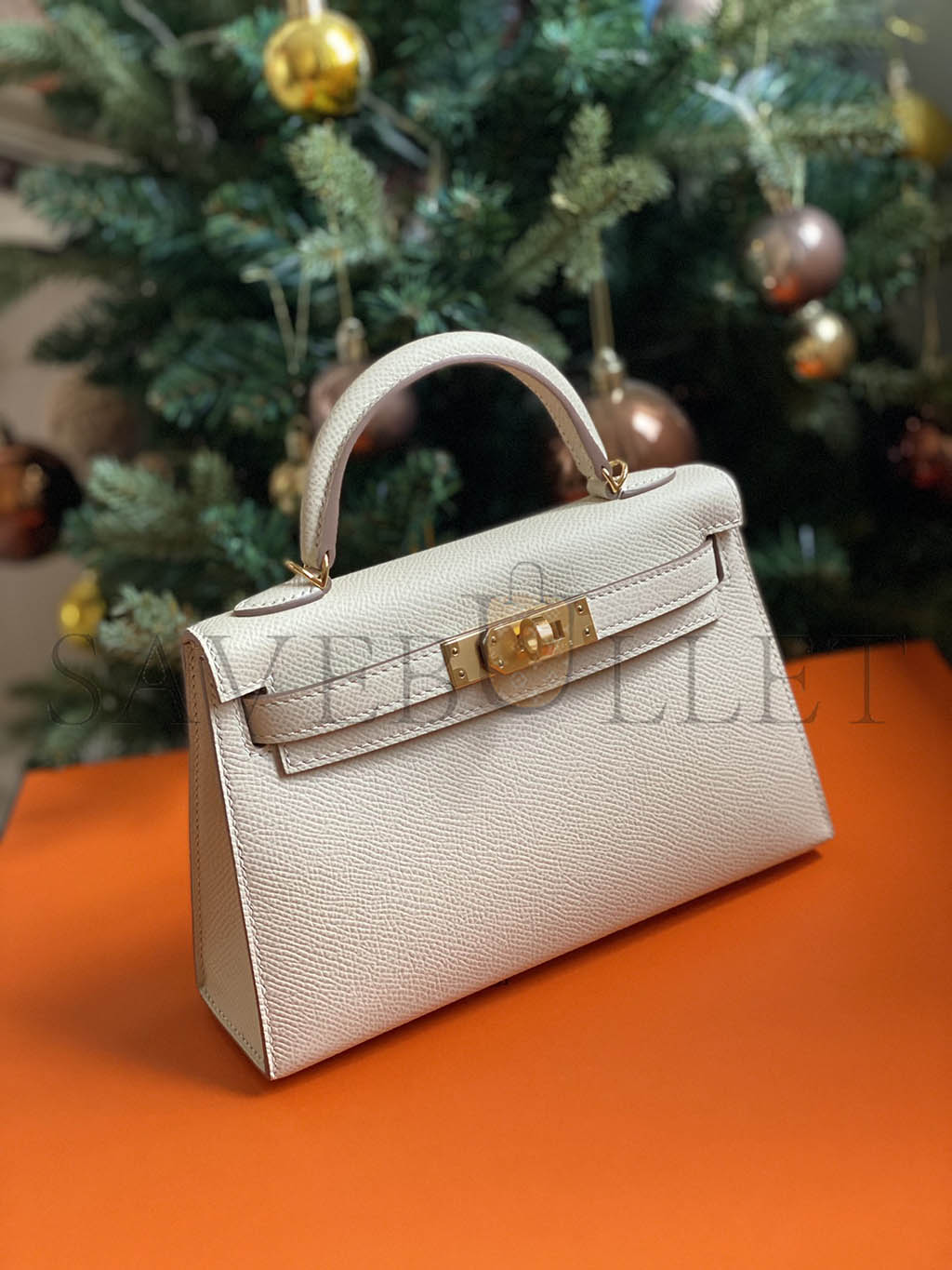 HERMÈS MINI KELLY II EPSOM MILKSHAKE WHITE GOLD BUCKLE (19*12*5.5cm)