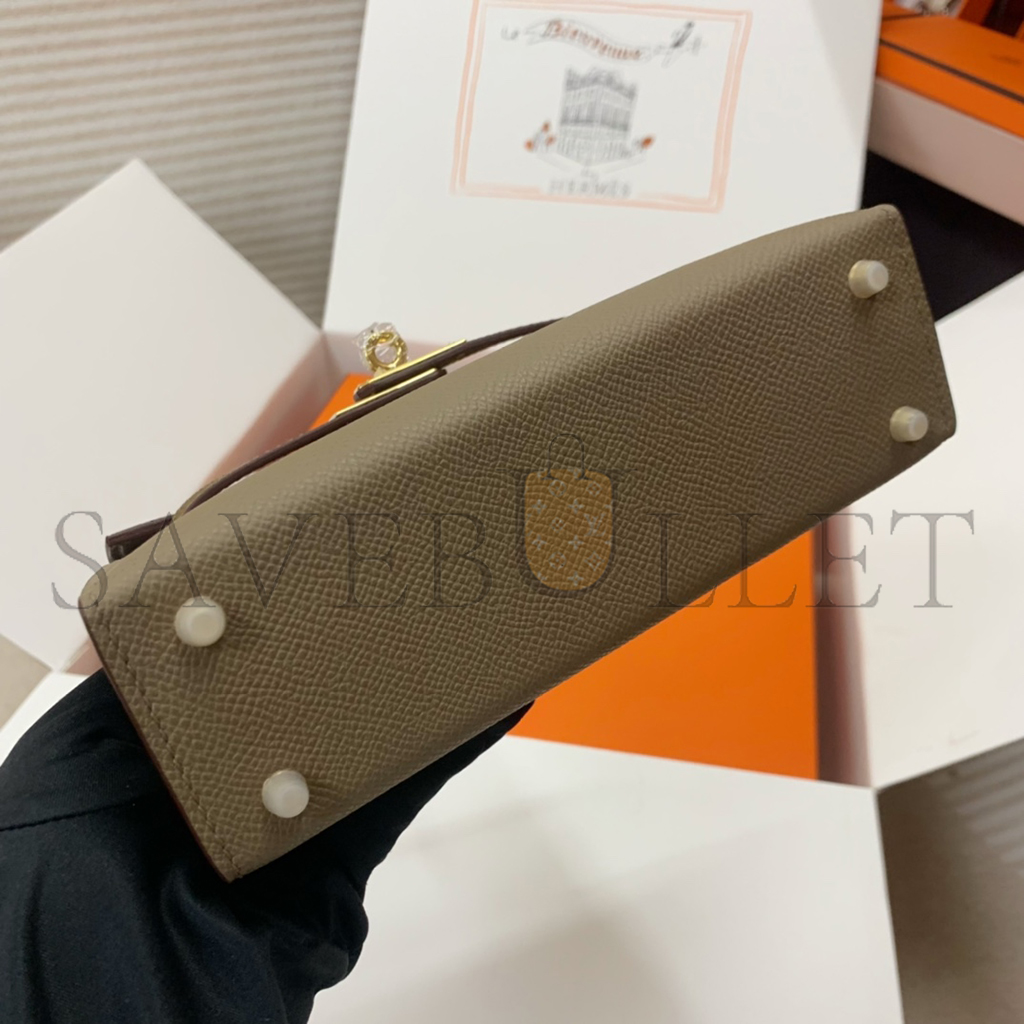 HERMÈS MINI KELLY II EPSOM THREE-COLOR ELEPHANT GRAY AND BISCUIT COLOR CHESTNUT COLOR (19*12*5.5cm)