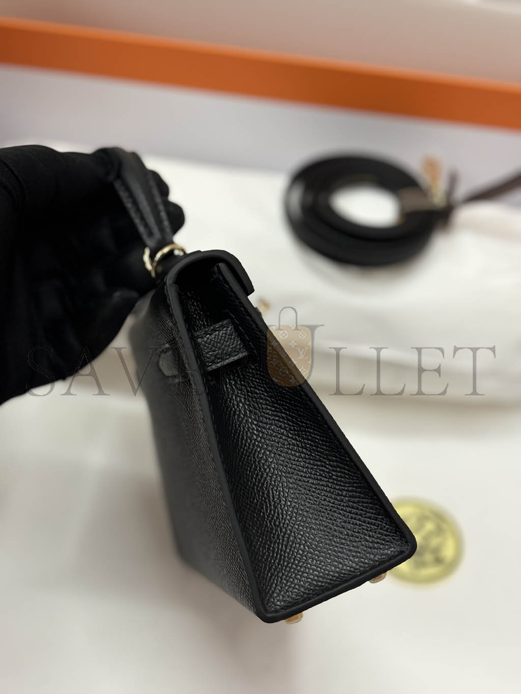 HERMÈS MINI KELLY DO BLACK EPSOM BAG (19*12*5.5cm)