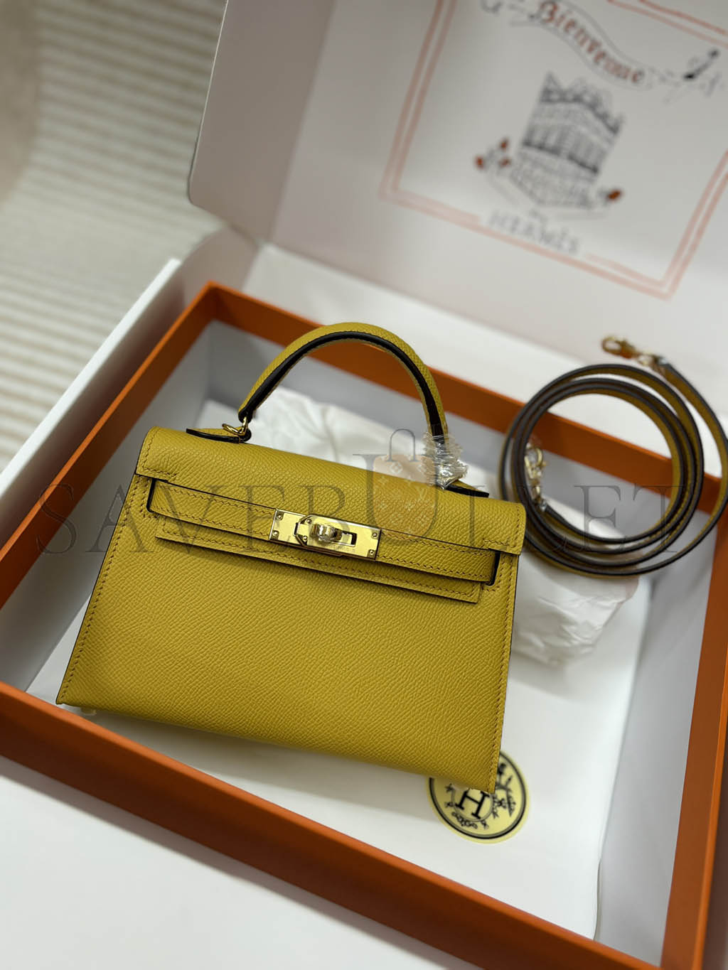 HERMÈS MINI KELLY II EPSOM AMBER GOLD BUCKLE (19*12*5.5cm)