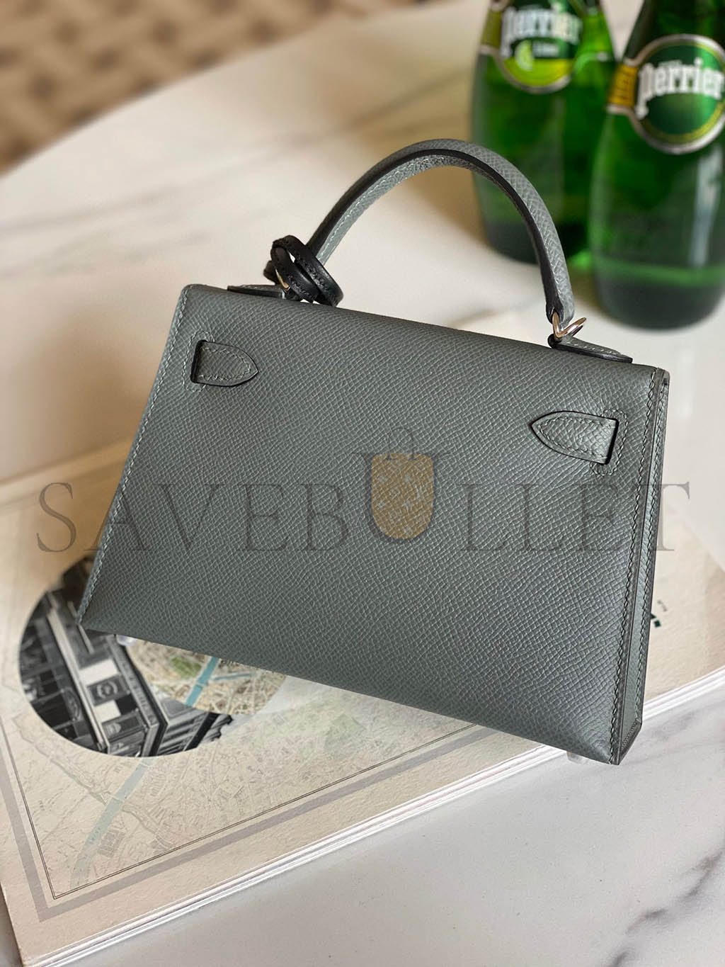 HERMÈS MINI KELLY II EPSOM ALMOND GREEN SILVER BUCKLE (19*12*5.5cm)
