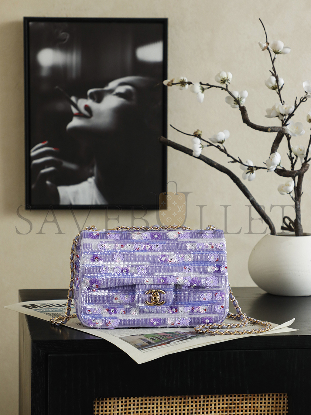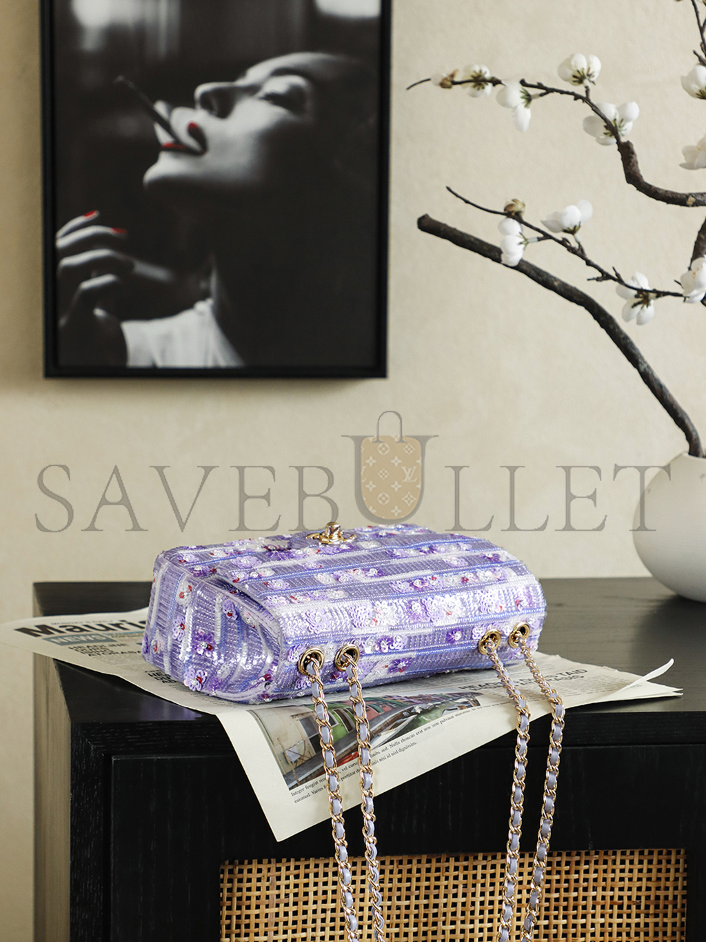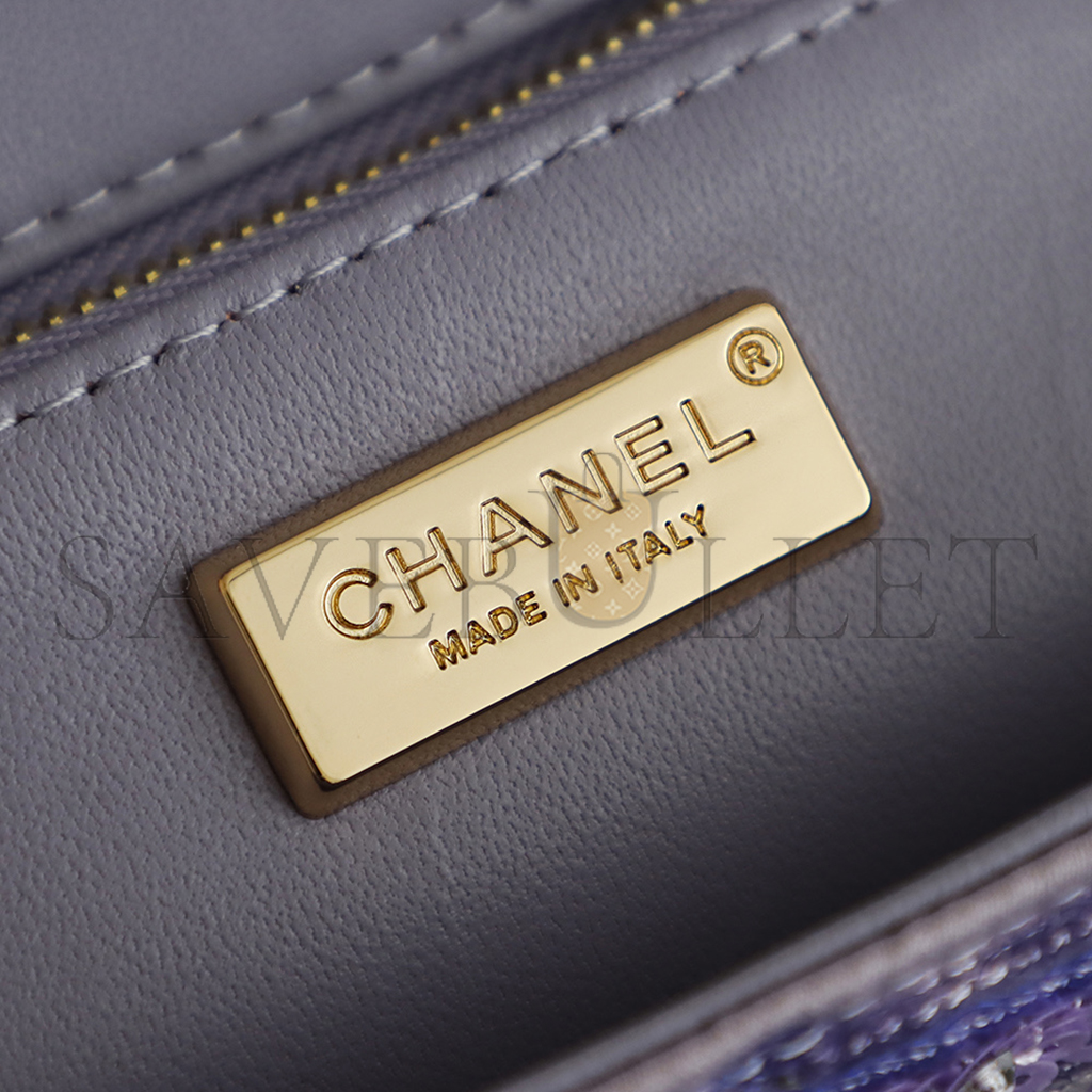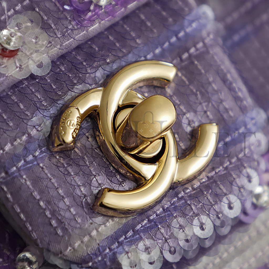 CHANEL 26C VIOLET SEQUINS CLASSIC FLAP BAG (21*14*8cm)