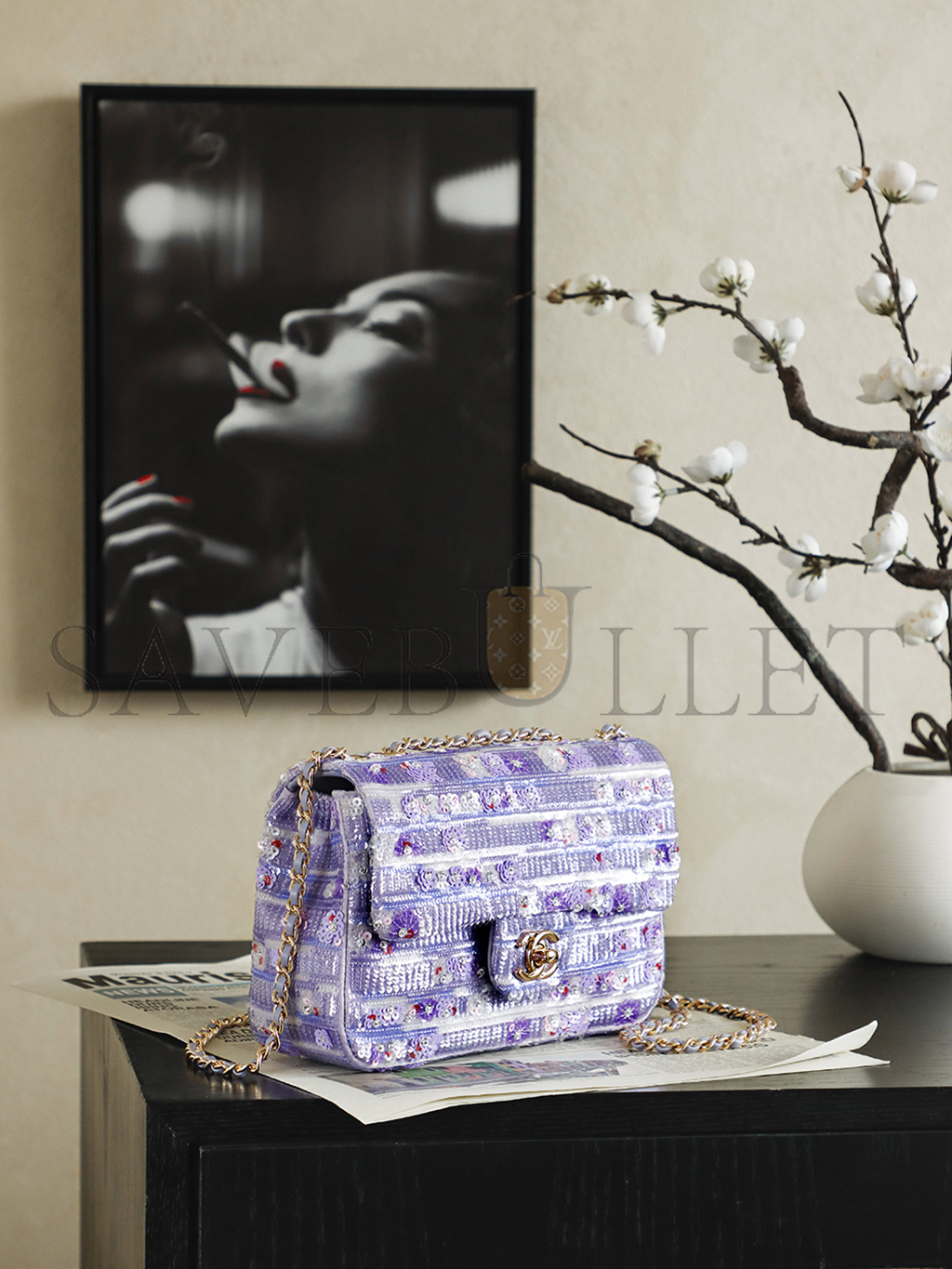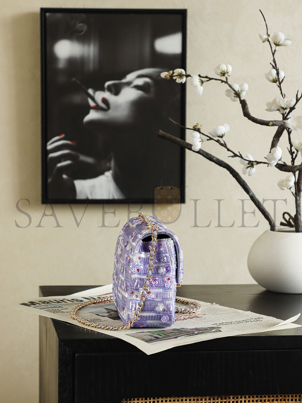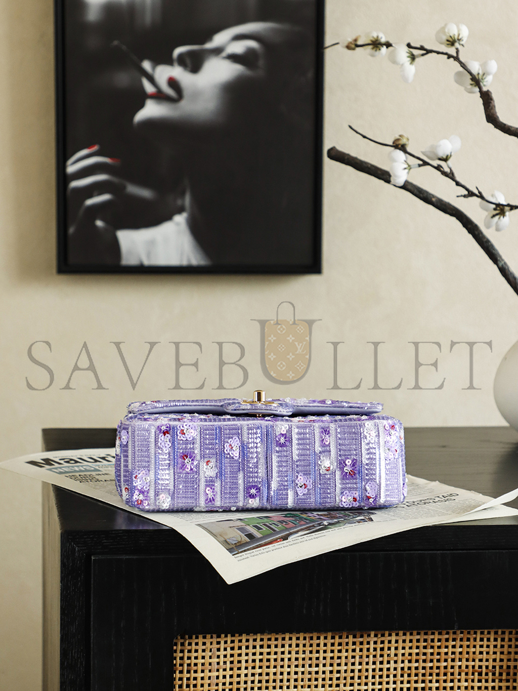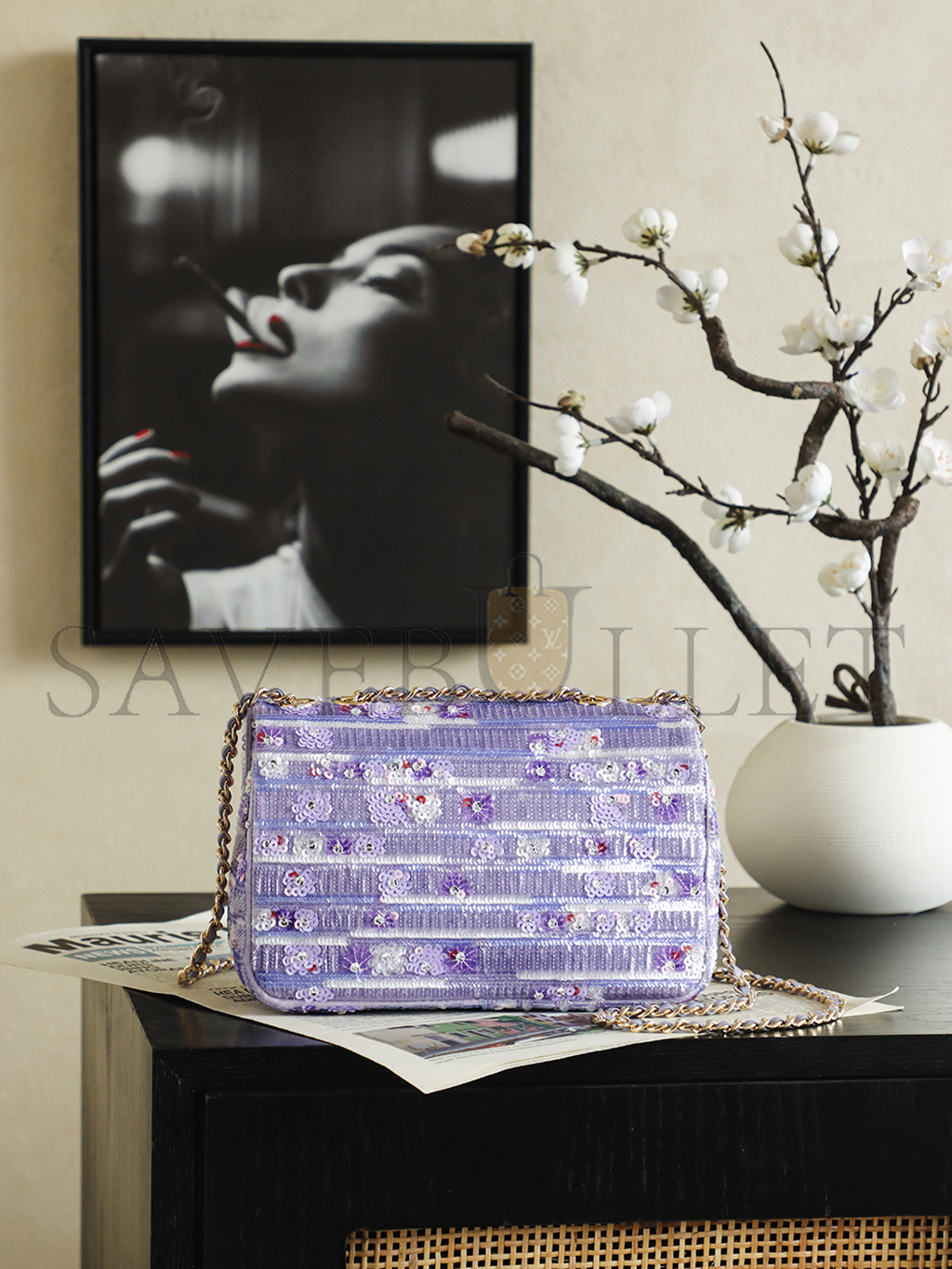 CHANEL 26C VIOLET SEQUINS CLASSIC FLAP BAG (21*14*8cm)