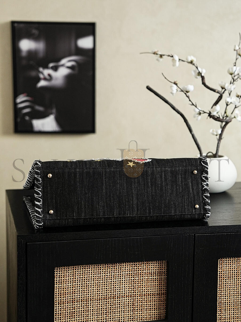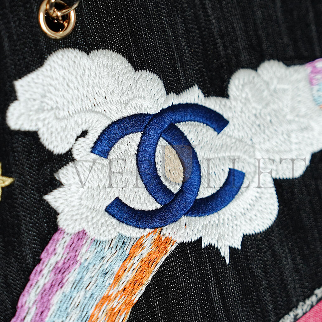 CHANEL DARK BLUE EMBROIDERED DENIM NIGHT FLIGHT TOTE BAG (40*30cm)