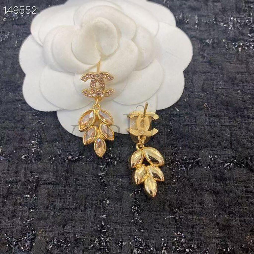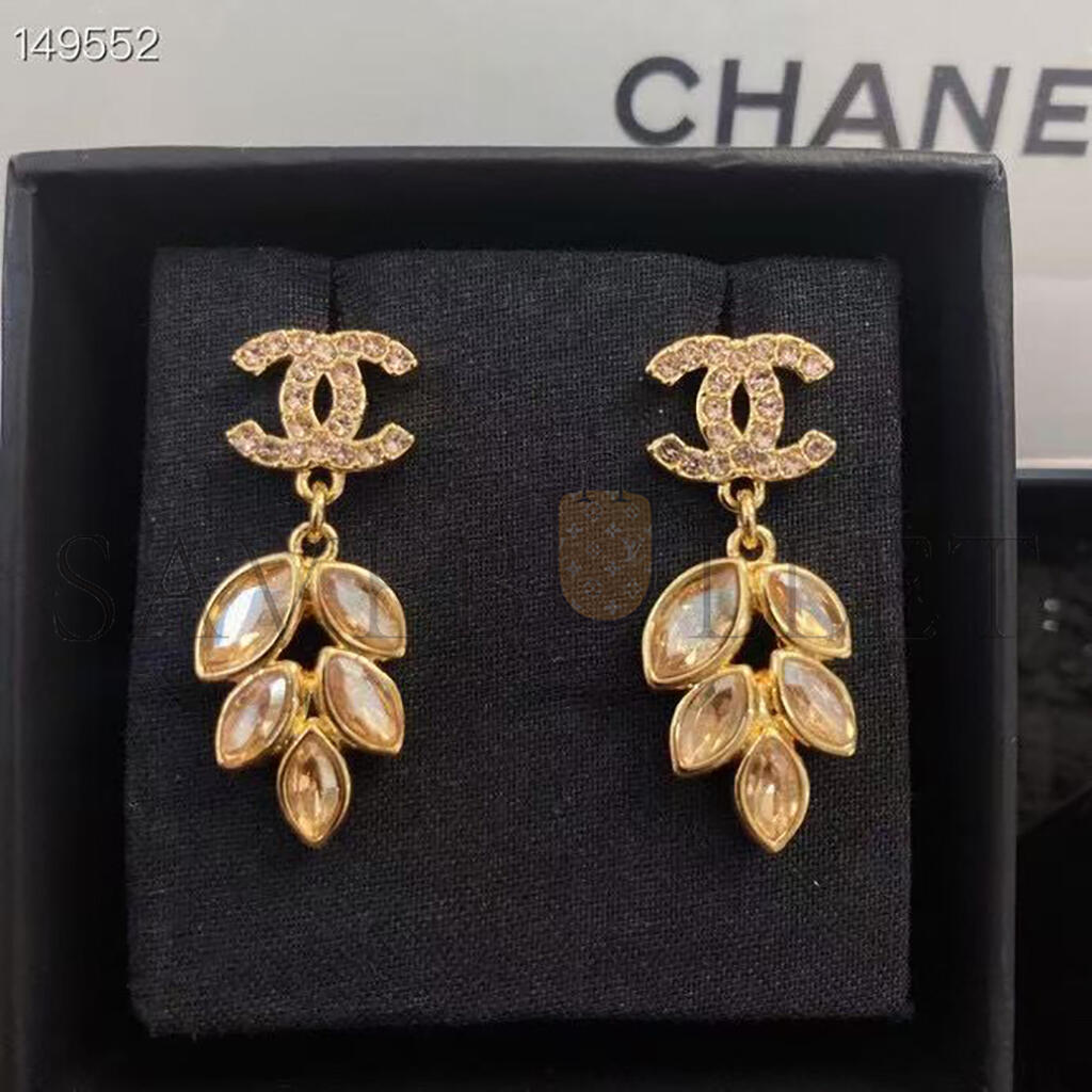 CHANEL STRASS CC LEAF DROP EARRINGS AB9606