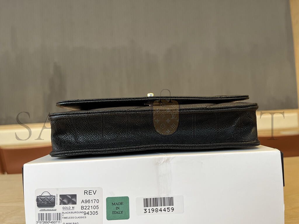 CHANEL LAMBSKIN QUILTED MINI TOP HANDLE RECTANGULAR FLAP GOLD BURGUNDY 1106350 (20*13*6cm)
