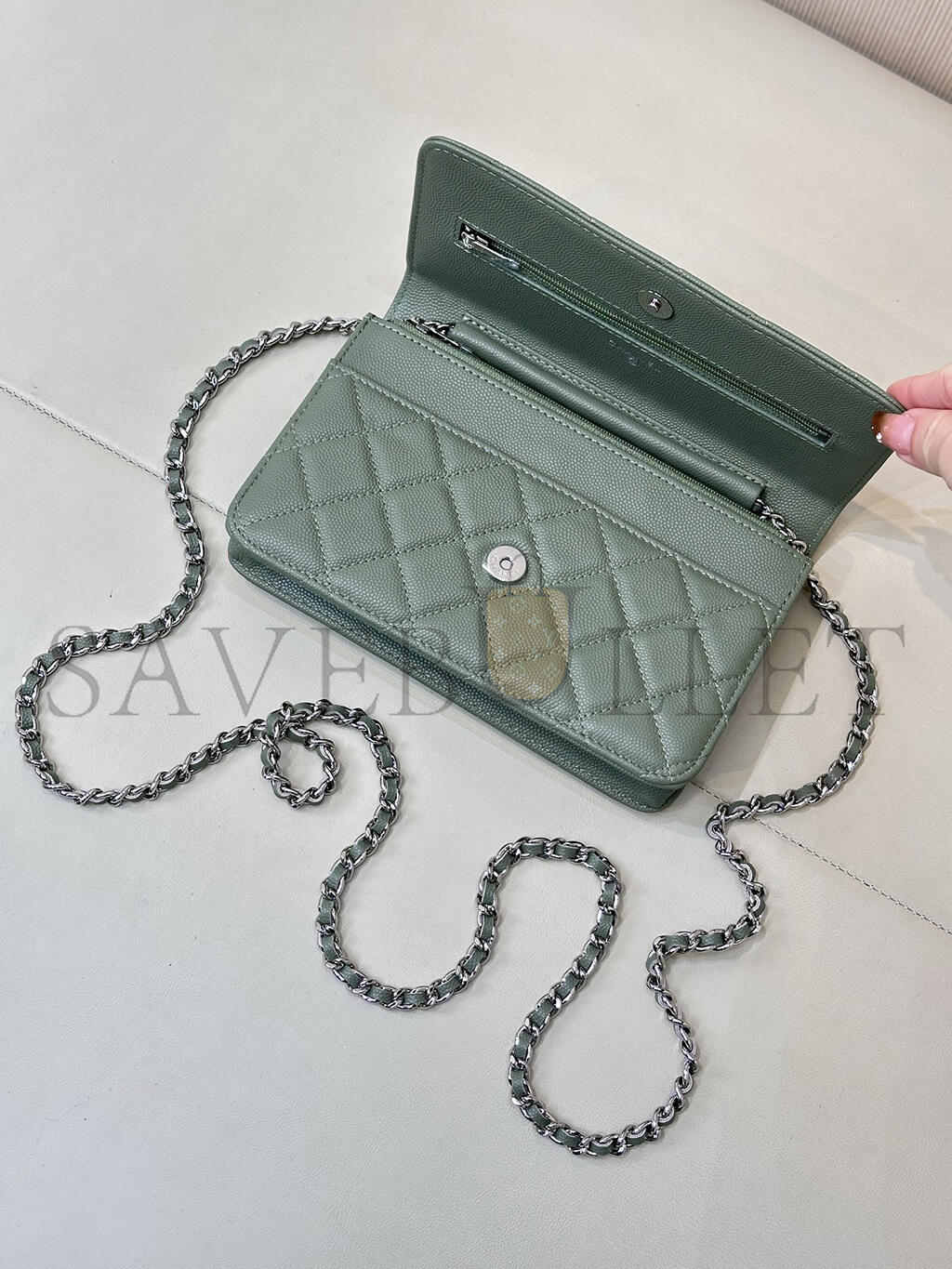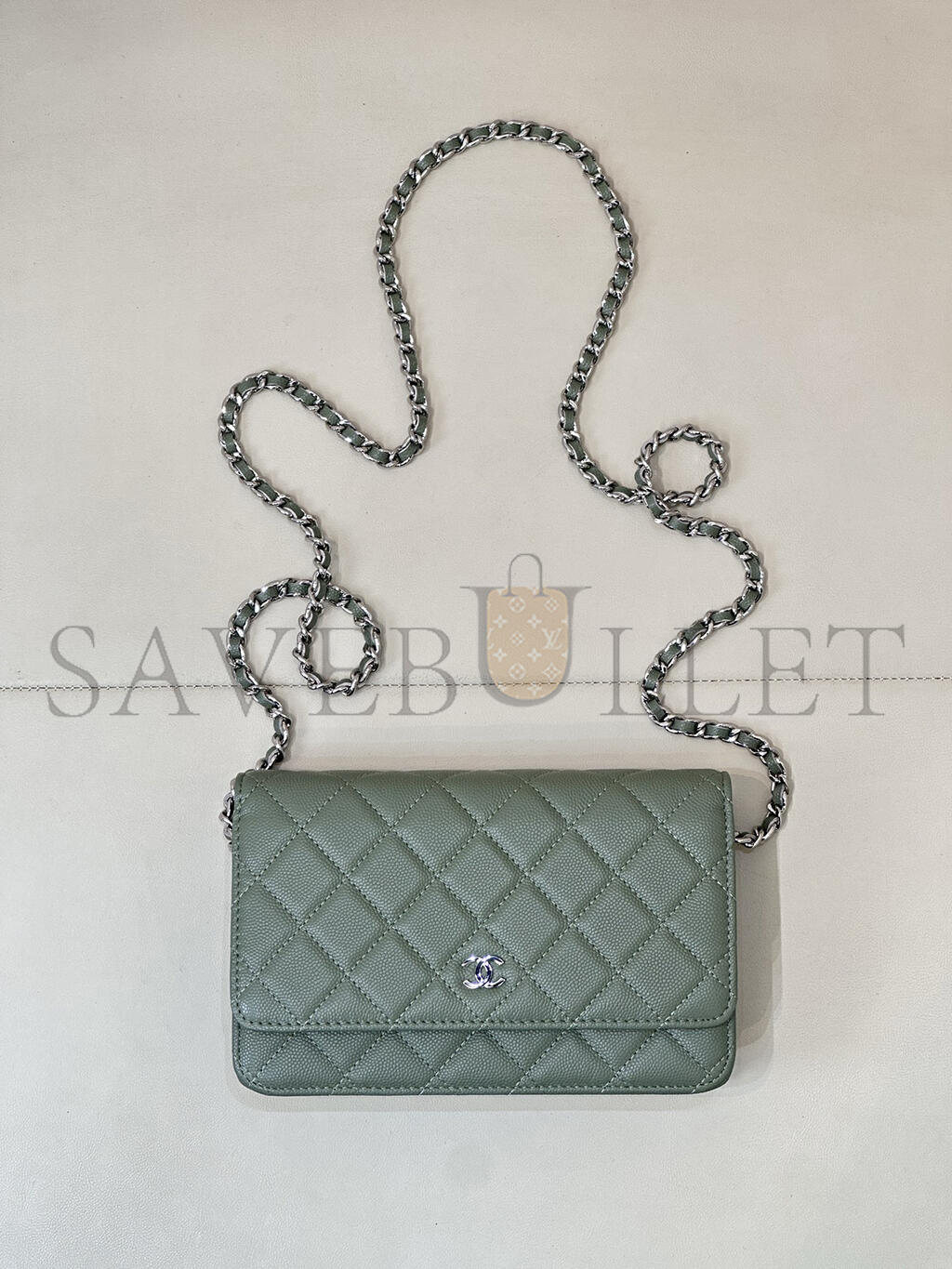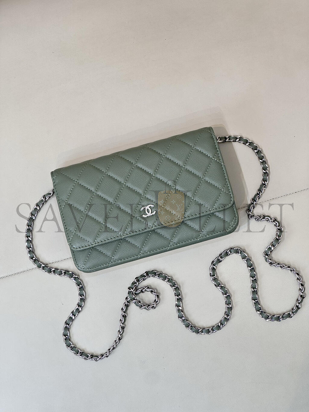 CHANEL CAVIAR QUILTED WALLET ON CHAIN WOC GREEN AP0250 (19*12*4.5cm)