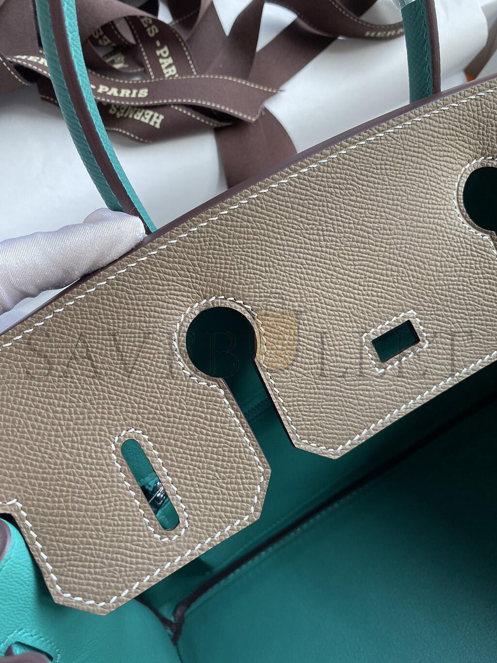 HERMES MASTER BIRKIN 30 EPSOM ELEPHANT GREY AND PEACOCK BLUE SILVER BUCKLE BAG H028369CK63 (30*23*15cm)