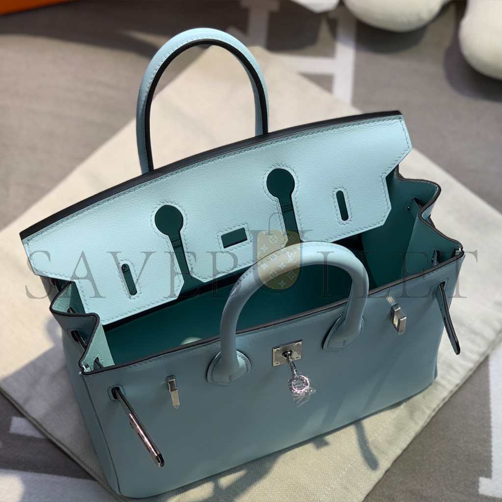 HERMÈS MASTER BIRKIN 25 SWIFT LEATHER FOG BLUE SILVER BUCKLE H049362CK21 (25*20*13cm)