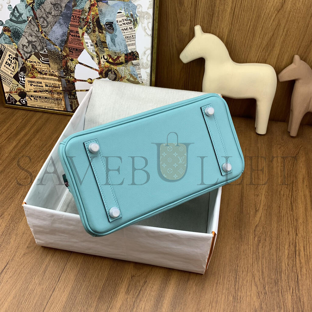 HERMÈS MASTER BIRKIN 25 SWIFT LEATHER MACAROON BLUE LINING 3Q PINK SILVER BUCKLE H049362CK15 (25*20*13cm)
